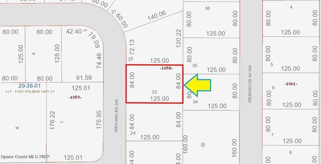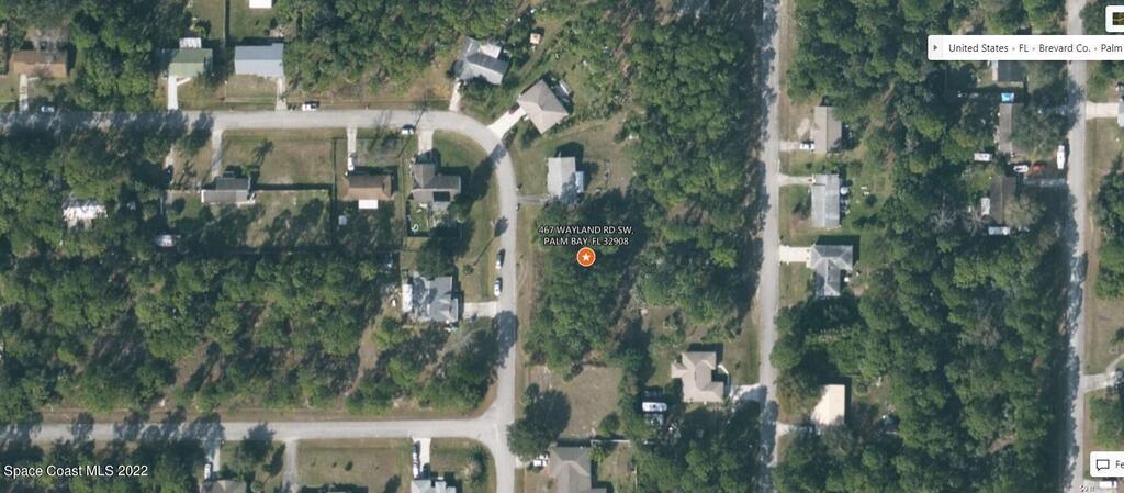 One of 2 side-by-side adjacent lots available in Port Malabar Unit 19 of Palm Bay (the other is 473 Wayland). Located in the southwest section, this 0.24 acre buildable residential lot is just 1.9 miles - 6 minutes to the Winn Dixie Supermarket, 2.1 miles - 7 minutes to Jupiter Elementary School, 11.3 miles - 25 minutes to Melbourne Airport, and 14 miles - 32 minutes to the beaches of Indialantic. From exit #176 of I-95 go west on Palm Bay Road for .7 miles, left on Minton Road for 3.3 miles, right on Jupiter Boulevard for .2 miles, right on Santo Domingo Avenue for .3 miles, left on San Luis Street for .4 miles, and right on Wayland Road. The lot will be on your right.