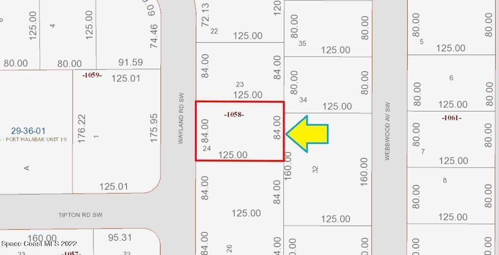 One of 2 side-by-side adjacent lots available in Port Malabar Unit 19 of Palm Bay (the other is 467 Wayland). Located in the southwest section, this 0.24 acre buildable residential lot is just 1.9 miles - 6 minutes to the Winn Dixie Supermarket, 2.1 miles - 7 minutes to Jupiter Elementary School, 11.3 miles - 25 minutes to Melbourne Airport, and 14 miles - 32 minutes to the beaches of Indialantic. From exit #176 of I-95 go west on Palm Bay Road for .7 miles, left on Minton Road for 3.3 miles, right on Jupiter Boulevard for .2 miles, right on Santo Domingo Avenue for .3 miles, left on San Luis Street for .4 miles, and right on Wayland Road. The lot will be on your right.