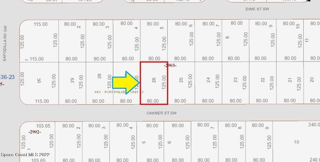 0.23 acre vacant lot available in Port Malabar Unit #53 of Palm Bay. There are no utilities present at this lot or in this area; so the lot and the unit are not build-able. The seller has no knowledge of the property and makes no representations except for title. This property is for investment purposes only in the future of Palm Bay. From exit #176 of I-95 go west on Palm Bay Road NE. Turn left on Minton Road and proceed south for 3.3 miles. Turn right on Jupiter Boulevard SW and left on DeGroodt Road SW for 2.5 miles. Turn right on J.A.Bombardier Boulevard for 1.4 miles, left on Sapodilla Road for .8 miles, and left on Oakner Street. The lot will be on your left.
