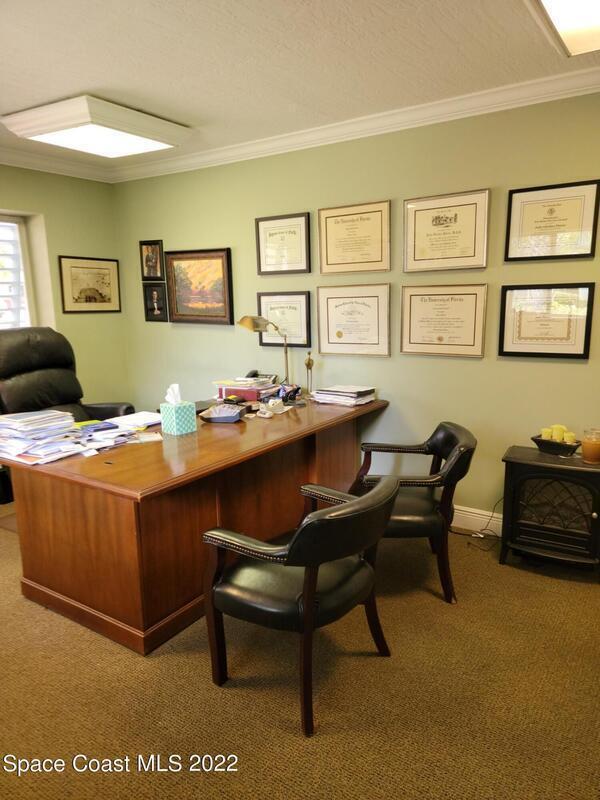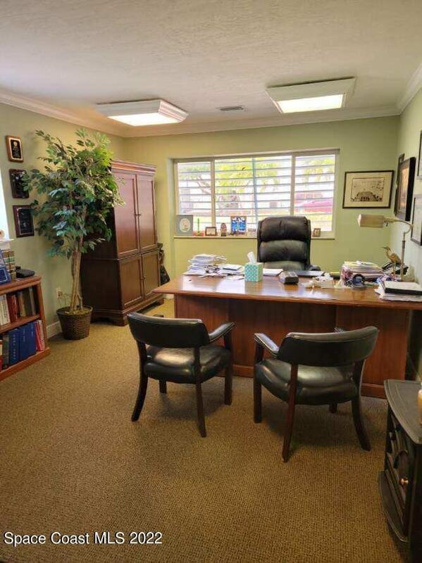 Lovely 5 room suite office building in the heart of Indialantic,, current use is Attorney, kitchen area, one bathroom, reception area and waiting room. 9 parking spots, hurricane shutters plus shade shutters, Zoning is office building, sprinkler system, a/c 1/28/21, shallow well. Need confirmed appointment.