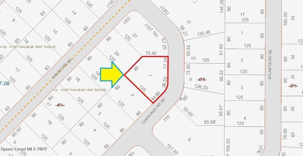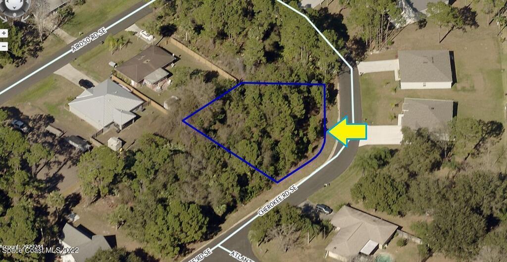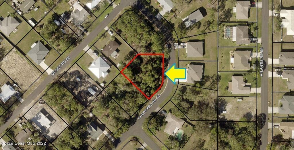 0.28 acre buildable residential lot available in Port Malabar Unit 11 of Palm Bay. Located in the southeast section, this lot has city water available. From exit #173 of I-95 go west on Malabar Road for .2 miles, left on San Filippo Drive for .5 miles, right on Jupiter Boulevard for .9 miles, left on Emerson Drive for 1.0 mile, right on Airoso Road for .3 miles, and left on Cherokee Road. The lot will be on your right.