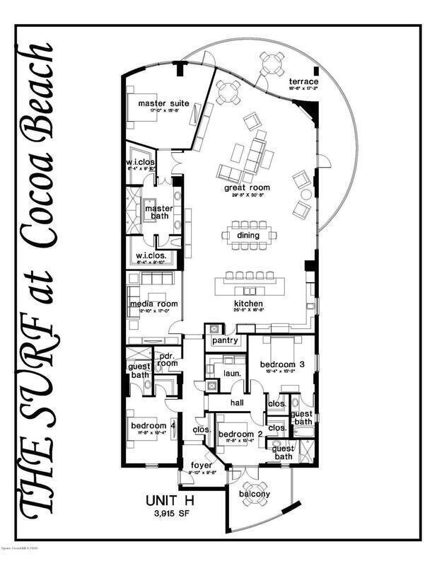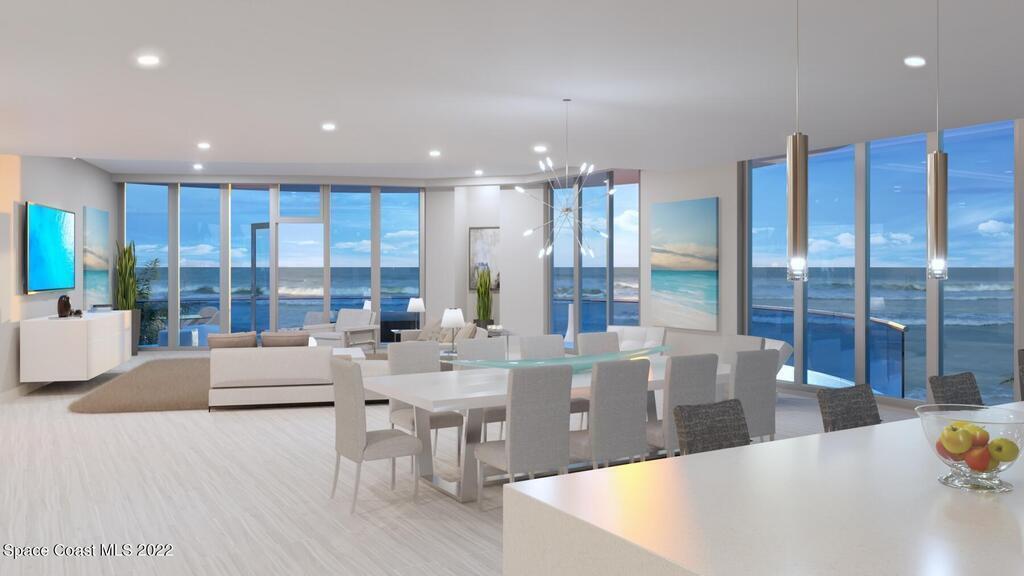 Spectacular South Corner Penthouse. 4 Bedroom, 4.5 Bath condo w/ addtional media room, 2 enormous balconies w/ glass railings for unobstructed views, floor to ceiling windows and glass doors rated to the highest hurricane standards, 11ft. ceilings, Chef's kitchen featuring European style cabinetry w/ Quartz Countertops and premium appliances package, kitchen island, walk-in pantry, natural gas cooking optional, Spa inspired master bath w/ double vanities, huge shower w/multiple showerheads, free standing tub, giant walk-in closests, quality tile flooring, designer lighting, built in fireplace option, 2 car garage w/ optional EV charger, Amazing Panoramic views of Cocoa Beach, Cape Canaveral, Merritt Island, Rockets, Launchpads, Cruiseships, and so much more. Located in the Heart of CB.