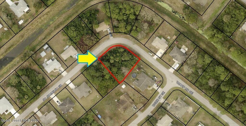 Oversized 0.27 acre buildable residential corner lot available in Port Malabar Unit 17 of Palm Bay. Located in the southeast section, this lot is just 1.4 miles - 4 minutes to the Publix Supermarket, 1.5 miles - 4 minutes to Columbia Elementary School, 11.7 miles - 26 minutes to Melbourne Airport, and 14.7 miles - 30 minutes to the beaches of Indialantic. From exit #173 of I-95 go west on Malabar Road for.2 miles, left on San Filippo Drive for 2.9 miles, right on Valerius Street for .3 miles, right on Wabash Road for .1 mile, left on Weldon Street for .1 mile, and right on Tharp Road. The lot will be on your left at the corner with St Johns Street.