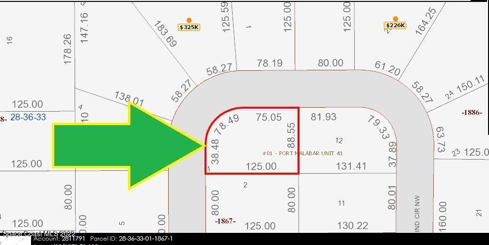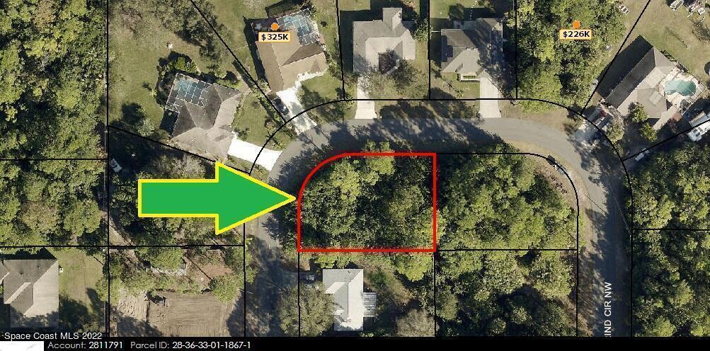 Oversized 0.26 acre **Corner** buildable single family residential lot available in Port Malabar Unit #41 of Palm Bay. Located in the northwest section, this lot is just 1.9 miles - 5 minutes to Heritage High School, 3.5 miles - 8 minutes to the Winn Dixie Supermarket, 14.2 miles - 25 minutes to Melbourne Airport, and 16.8 miles - 32 minutes to the beaches of Indialantic. From exit #180 of I-95 go west on US-192 for .5 miles, left on St Johns Heritage Parkway for 6.1 miles, left on Malabar Road for .9 miles, left on Wisteria Avenue for .4 miles, right on Virburnum Road for .1 mile, and left on Tamarind Circle. The lot will be on your right.