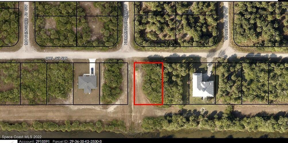**There's a house 2 lots away on the same road, so utilities! 0.24 acre buildable single family residential lot with a drainage easement available in Port Malabar Unit #49 of Palm Bay. Located in the southwest section, this lot has a drainage canal in the rear allowing more privacy, and is just 4.00 miles -8 minutes to Westside Elementary School, 5.4 miles - 11 minutes to the Publix Supermarket, 14.2 miles - 29 minutes to Melbourne Airport, and 21.4 miles - 38 minutes to the beaches of Indialantic. From exit #176 of I-95 go west on Palm Bay Road NE for .7 miles, left on Minton Road for 3.3 miles, right on Jupiter Blvd for .1 mile, left on DeGroodt Road for 4.6 miles, right on St. Andre Blvd for 1.2 miles, left on Madden Ave for .5 miles, and left on Owl. The lot will be on your right.