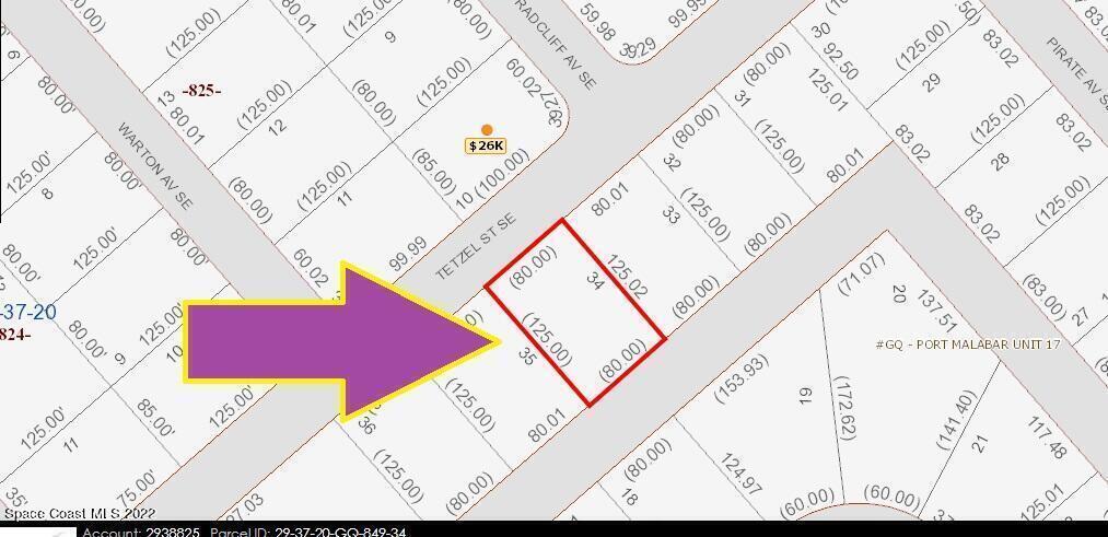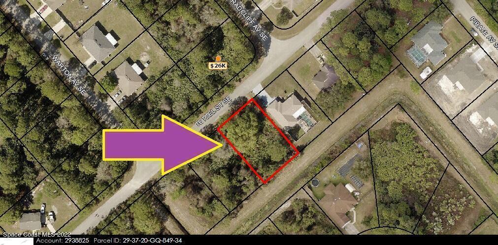 023 acre buildable single family residential lot [Rs2 Zoning] with a right-of-way easement in the back of the property located in Port Malabar Unit #17 of Palm Bay. Nicely located in the SE section near the Bayside Lakes Subdivision and the PGA Majors Golf Course, this property is just 1.7 miles -5 minutes- to Publix Shopping, 3.2 miles -8 minutes- to Bayside High School, 12.3 miles -27 minutes- to the Melbourne Square Mall, and just 13.8 miles -1/2 an hour- to the beaches in Indialantic. From Exit #173 of I-95 go west on Malabar Road NE. Turn left on San Filippo Drive SE and proceed south for 3.3 miles. Turn right on Wyoming Drive SE, right on Pirate Avenue SE and left on Tetzel Street SE. The lot will be on the left.