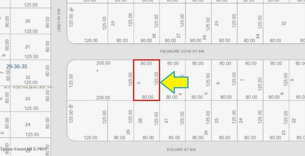 0.23 acre buildable residential lot available in Port Malabar Unit 49 of Palm Bay. Located in the southwest section, this lot is just 3.4 miles - 7 minutes to Westside Elementary School, 5.3 miles - 11 minutes to the Publix Supermarket, 16.6 miles - 34 minutes to Melbourne Airport, and 18.5 miles - 38 minutes to the beaches of Indialantic. From exit #173 of I-95 go west on Malabar Road for .2 miles, left on San Filippo Drive for 7.5 miles, left on St Andre Boulevard for 1.2 miles, right on Madden Avenue for .2 miles, right on Opal Street for .1 mile, left on Libby Avenue for .1 mile, and right on Treasure Cove Street. The lot will be on your right.