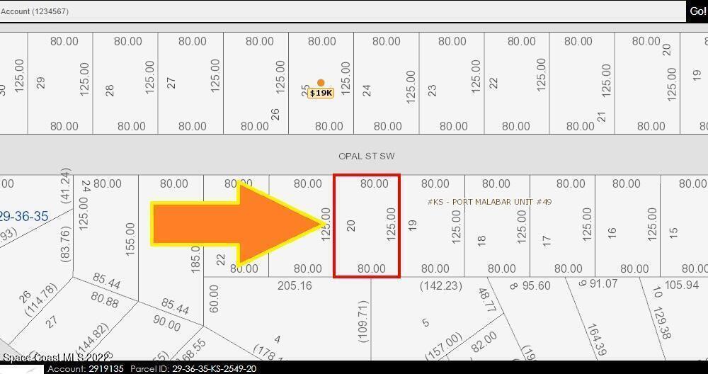 0.23 acre buildable single family residential lot available in Port Malabar Unit #49 of Palm Bay. Located in the southwest section, this lot is just 3.3 miles - 7 minutes to Westside Elementary School, 5.2 miles - 11 minutes to the Publix Supermarket, 16.5 miles - 34 minutes to Melbourne Airport, 18.4 miles - 37 minutes to the beaches of Indialantic. From exit #176 of I-95 go west on Palm Bay Road for .7 miles, left on Minton Road for 3.3 miles, right on Jupiter Boulevard for .1 mile, left on DeGroodt Road for 4.6 miles, right on St Andre Boulevard for 1.2 miles, right on Madden Avenue for .2 miles, and right on Opal Street. The lot will be on your right.