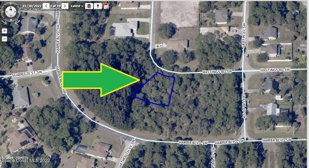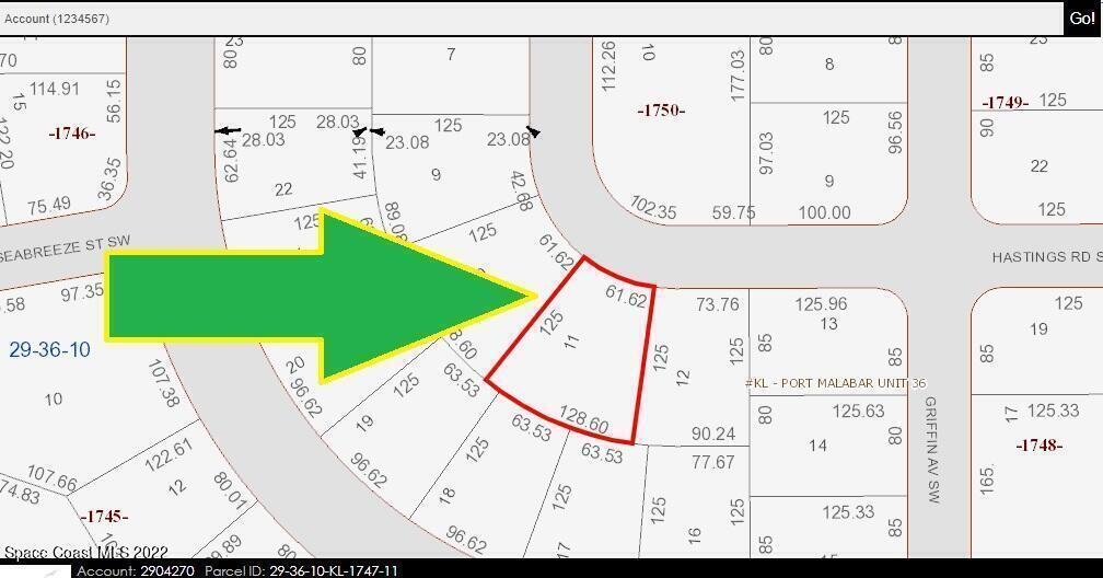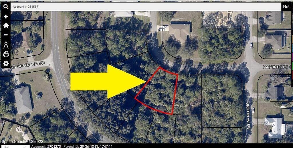 Oversized 0.28 acre build-able single family residential lot (Rs-2 Zoning) available in Port Malabar Unit #36. Nicely located in the SW section of Palm Bay, this property is just 5.3 miles -12 minutes to Publix Shopping, 3.7 miles -8 minutes- to Heritage High School, 1.4 miles -5 minutes- to Jupiter Elementary, 4.8 miles -10 minutes- to the Compound, 10.5 miles -28 minutes- to the Melbourne Square Mall, and just 16.7 miles -36 minutes- to the beaches in Indialantic. From Exit #176 of I-95 go west on Palm Bay Road NE. Turn left on Minton Road and proceed south for 2.5 miles. Turn right on Malabar Road and proceed west for 1 miles. Turn left on Garvey Road and proceed south for 1.3 miles. Turn right on Harper Boulevard SW, right on Griffin Avenue, and left on Hastings. The lot is left.