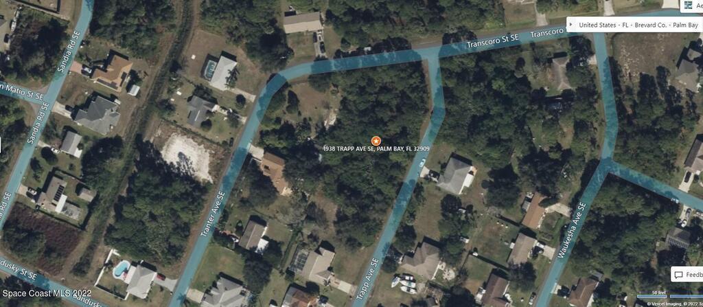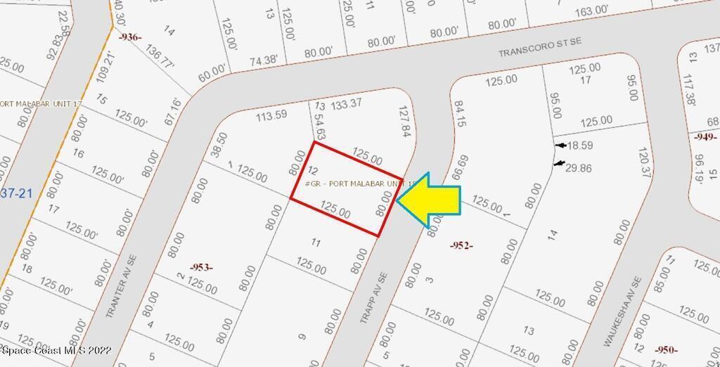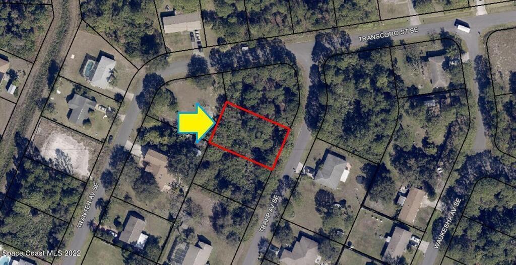 One of 2 side-by-side adjacent lots available in Port Malabar Unit 18 of Palm Bay (the other is 1900 Trapp). Located in the southeast section, this buildable residential 0.23 acre lot is just 2.1 miles - 5 minutes to Columbia Elementary School, 2.3 miles - 6 minutes to the Publix Supermarket, 11.7 miles - 24 minutes to Melbourne Airport, and 13.6 miles - 28 minutes to the beaches of Indialantic. From exit #173 of I-95 go west on Malabar Road for .2 miles, left on San Filippo Drive for 3.7 miles, right on Transcoro Street for .3 miles, and left on Trapp Avenue. The lot will be on your right.