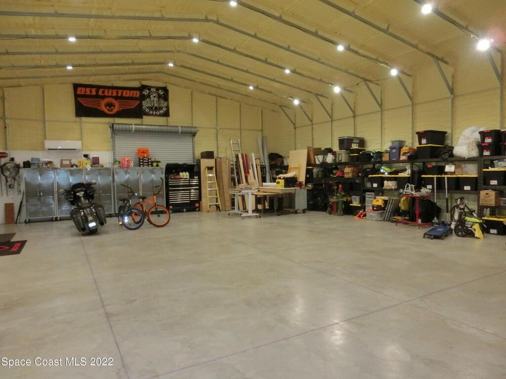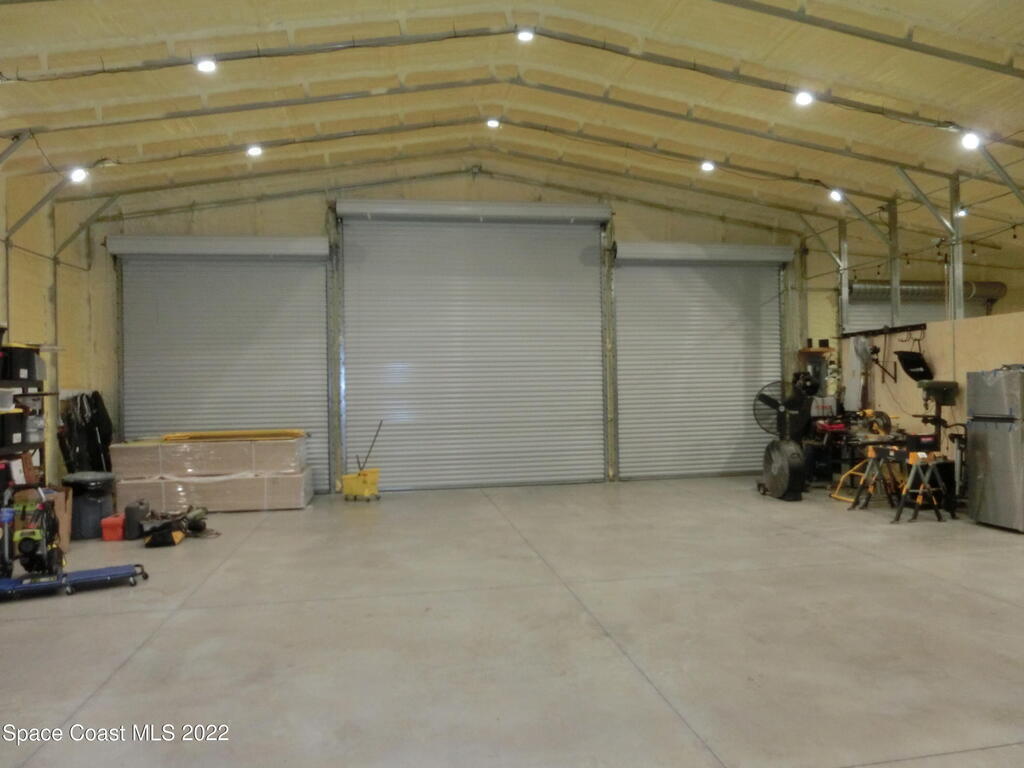 Rarely available 2.88+/- acre parcel with paved road frontage. 70x48 metal building with spray foam insulation (icynene) on entire interior and air conditioned throughout. 14' walls, 6 roll-up doors will accommodate RVs, 2 pedestrian doors. 26x26 metal building with air conditioning offers full kitchen and bath. 24x20 covered parking area. Large concrete apron offers plentiful parking. Private parcel is cleared with stocked pond and well, mature trees throughout. Fenced and gated. A must see!