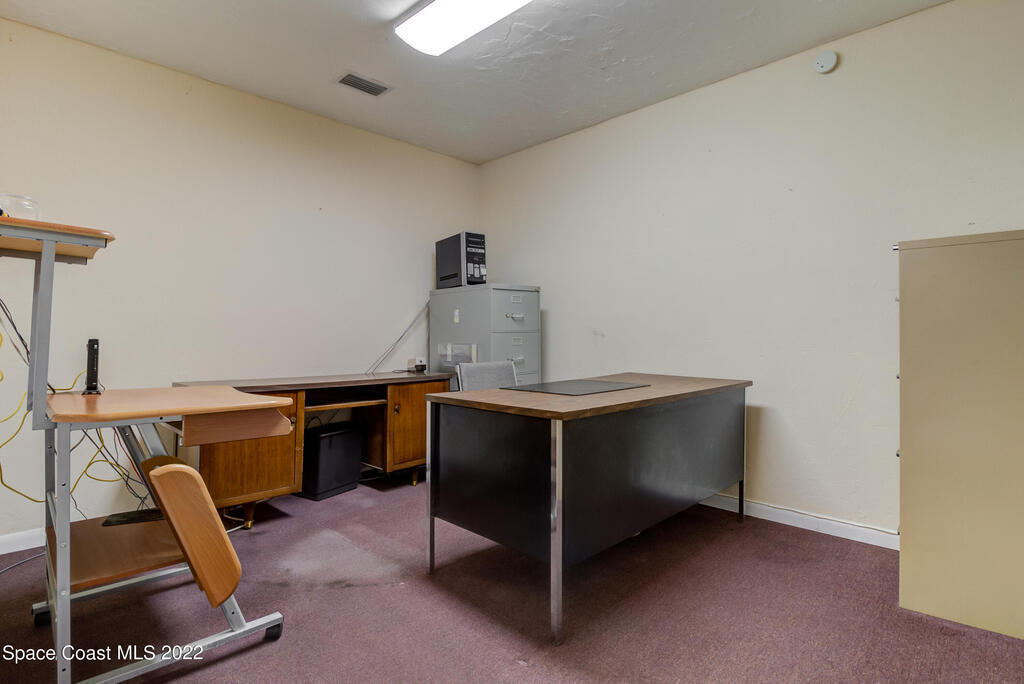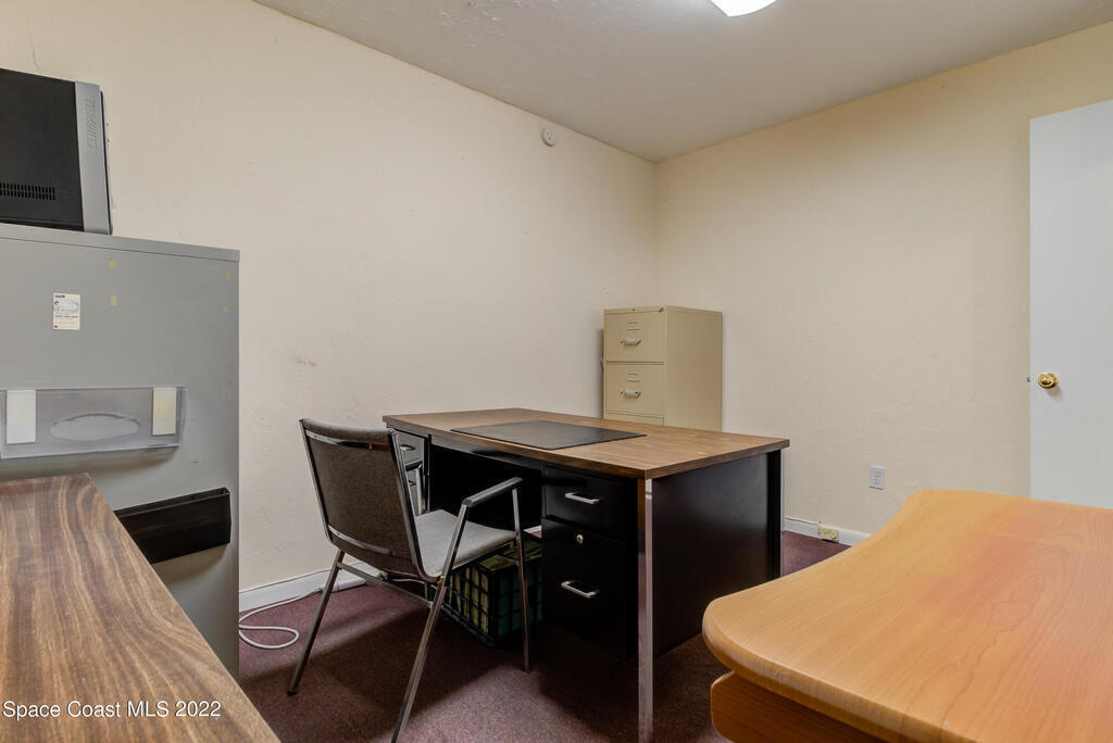Commercial property for sale in an established industrial complex, including office space and storage bay garage. The interior offers a front reception office, bathroom facility, and back office space, all equipped with power and internet capabilities. Connected to the office, the large storage bay can house trucks & tools, act as a work shop, or store supplies. A rolling garage door keeps things secure and lofted space above the office offers additional long-term storage. Parking in front includes dedicated spaces and additional parking is available in the surrounding area as well. This unique property is a great choice for service businesses, construction companies, small custom industries, and more. Convenient US 1 location ensures easy access for business clients and employees.