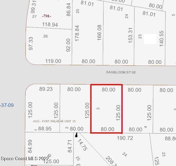 3018 Sagbloom St. with an adjacent single family residential lot nextdoor also available in Port Malabar Unit #15 of Palm Bay Tax acct # 's 2930654. City water is already at the home on the CornerLocated in the southeast Palm Bay. This buildable residential lot is just 1.6 miles - 4 minutes to Eastern Florida State College, 5 minutes to the shopping, 9.3 miles - 22 minutes to Melbourne Airport, and 12.2 miles - 24 minutes to the beaches of Indialantic.
