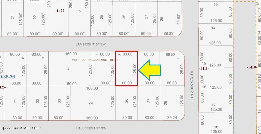 0.23 acre buildable residential lot available in Port Malabar Unit 30 of Palm Bay. Located in the southwest section, this lot is just 1.9 miles - 5 minutes to Westside Elementary School, 3.8 miles - 9 minutes to the Publix Supermarket, 15.7 miles - 32 minutes to Melbourne Airport, and 17.7 miles - 35 minutes to the beaches of Indialantic. From exit #176 of I-95 go west on Palm Bay Road for .7 miles, left on Minton Road for 3.3 miles, right on Jupiter Boulevard, left on DeGroodt Road for 4.2 miles, right on Frazer Street for .2 miles, left on Lakeland Avenue, right on Labra Road, left on Fitzpatrick Avenue, and right on Lambright Street. The lot will be on your left.