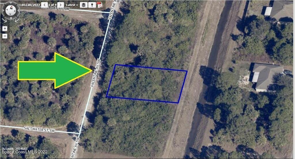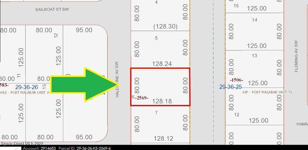 1 of 2 side-by-side adjacent 0.23 acre single residential lot [Rs2 Zoning] available in Port Malabar Unit #49 of Palm Bay. Located in the southwest section, each lot has a drainage canal in the rear allowing more privacy, and is just 2.2 miles - 6 minutes to Westside Elementary School, 3.6 miles - 9 minutes to the Publix Supermarket, 15.1 miles - 34 minutes to Melbourne Airport, and 18.7 miles - 38 minutes to the beaches of Indialantic. From exit #176 of I-95 go west on Palm Bay Road NE for .7 miles, left on Minton Road for 3.3 miles, right on Jupiter Boulevard for .1 mile, left on DeGroodt Road SW for 3.7 miles, right on Fitchburg Street for .7 miles, right on Fleming Avenue, right on Olivia Street, and left on Valentine Avenue. The lot will be on your left.