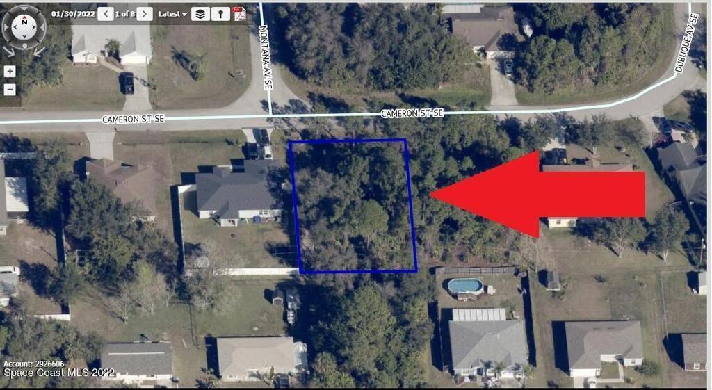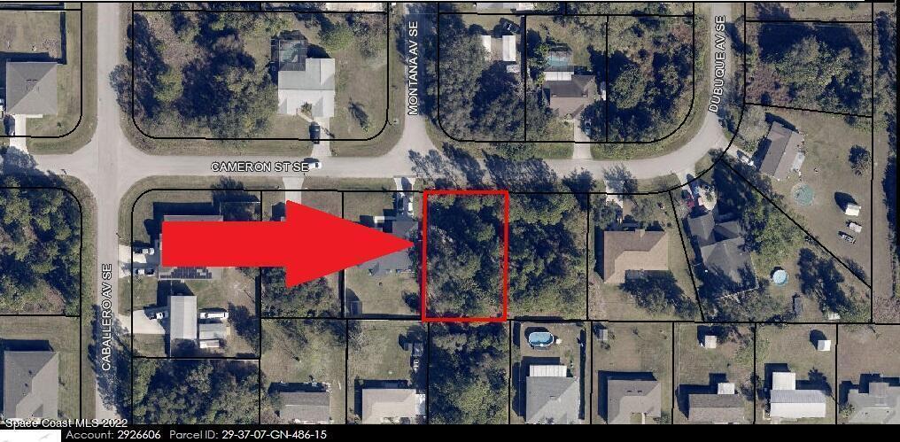 One of 2 side-by-side adjacent lots available in Port Malabar Unit 12 of Palm Bay. Located in the southeast section, this 0.23 acre buildable residential lot has city water available, and is just 1 mile - 3 minutes to Turner Elementary School, 1.7 miles - 5 minutes to the Winn Dixie Supermarket, 11.1 miles - 25 minutes to Melbourne Airport, and 14 miles - 30 minutes to the beaches of Indialantic. From exit #176 of I-95 go west on Palm Bay Road for .7 miles, left on Minton Road for 3.3 miles, left on Jupiter Boulevard for .3 miles, right on Caballero Avenue for .4 miles, and left on Cameron Street. The lot will be on your right.