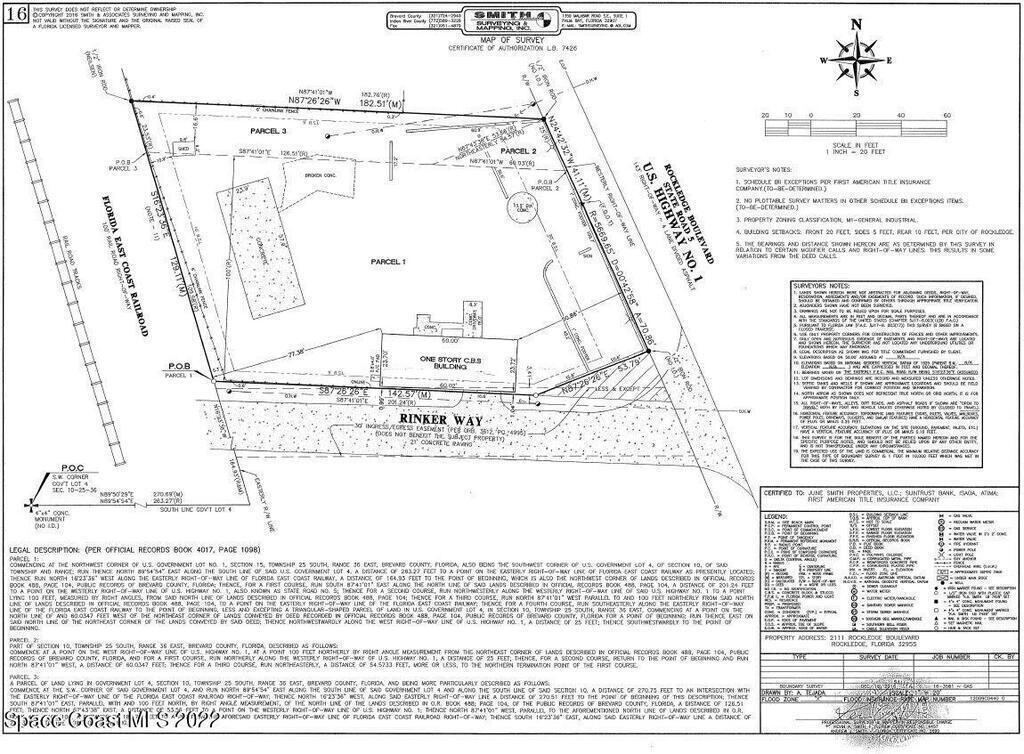 Stand-Alone Office/Flex/Warehouse with Yard in the HEART of Rockledge. Property is located at the northwest corner of US1 & Rinker Way and has exposure to approximately 32,500 VPD. Interior is estimated 456 SF HVAC Office + 984 SF Warehouse = 1,440 SF Total. Concrete flooring throughout interior. 11' 6'' +/- clear ceiling height in warehouse. Two grade level overhead doors. One is 8' Wide x 9' Tall +/- and the other is 7' 7'' Wide x 7' Tall +/-. Zoning is City of Rockledge Light Industrial (M2). This flexible zoning allows Warehousing, Manufacturing, Assembly, Automotive & More! Open Storage Yards are Permitted with Special Exception from City of Rockledge. Close proximity to Viera, Historic Cocoa Village, and all of the beaches, shopping, dining, and entertainment in the area!