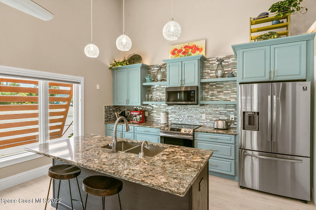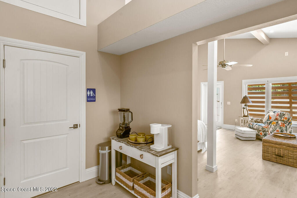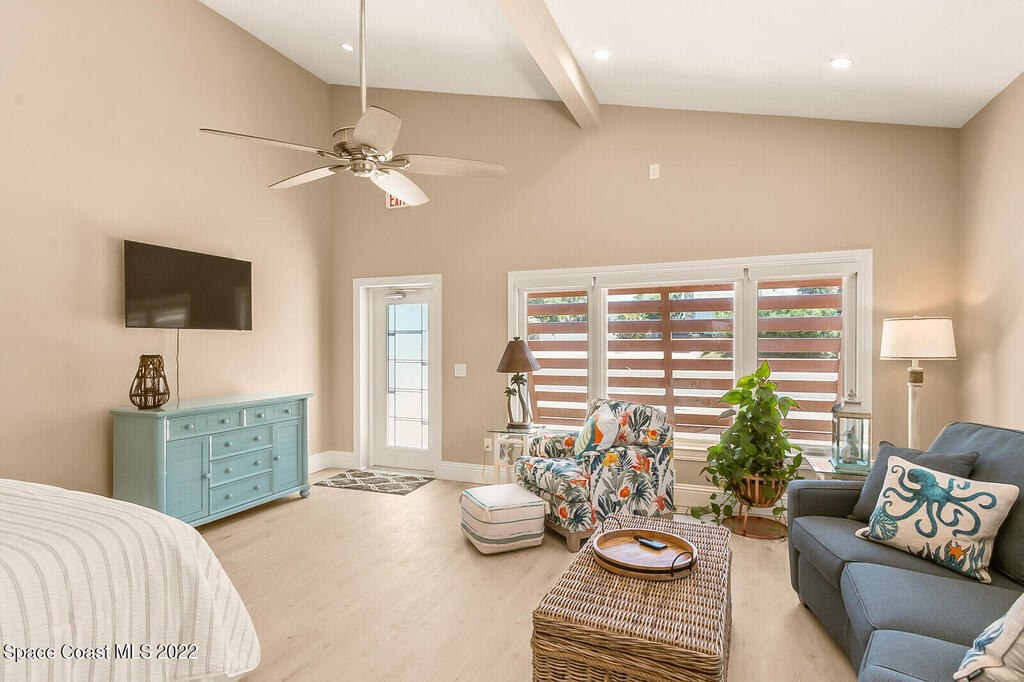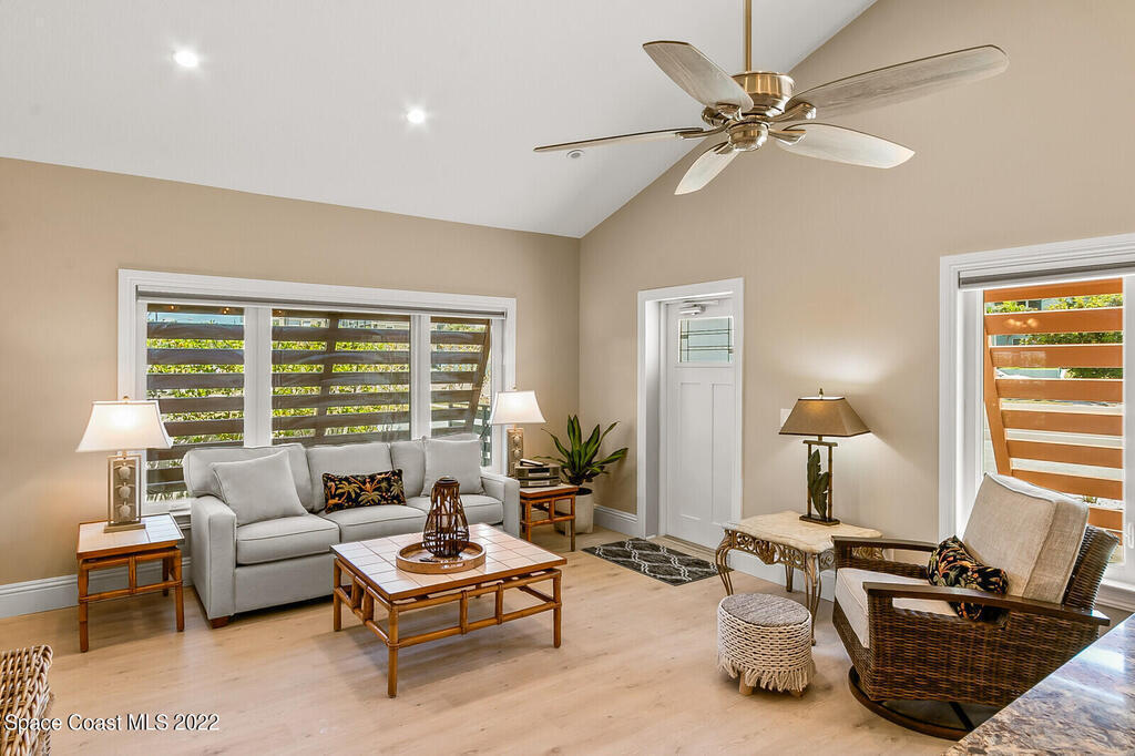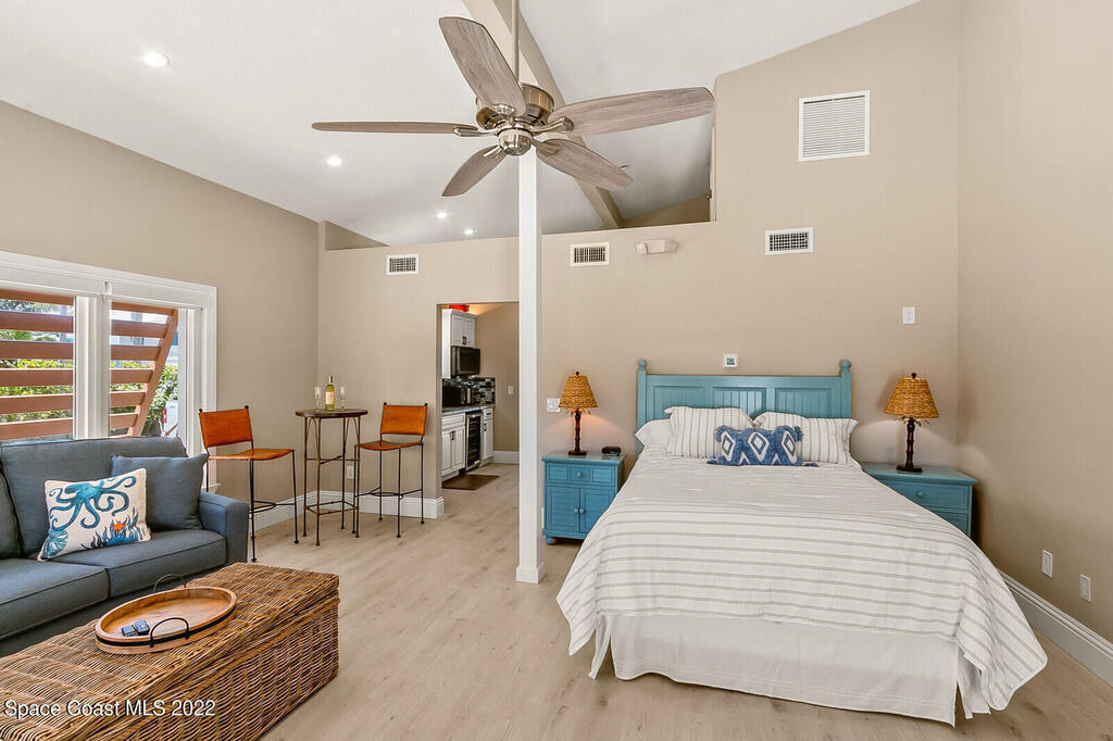 The iconic ''Cape Codder'' restaurant has been transformed into a gorgeous mixed use property. It has been taken back to the concrete walls and put back together with no expense spared. Live in one side and have your business located in the ADA approved unit. Street sign is a bonus! The possibilities for use are endless. Full renovation was complete in late 2021 inclusive of A/C, plumbing, electrical, impact windows, luxury vinyl flooring, hot water heaters, roof and much more. The 2 units are separated by a firewall and each has its own electric meter. Currently licensed with the county and state as a vacation rental on the apartment unit. Perfectly situated in South Cocoa Beach between the river and the beach.