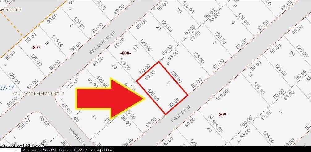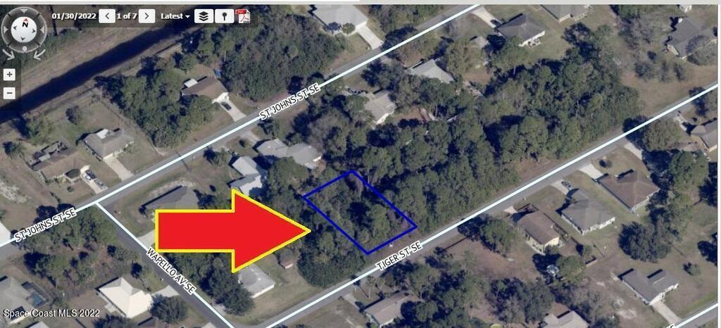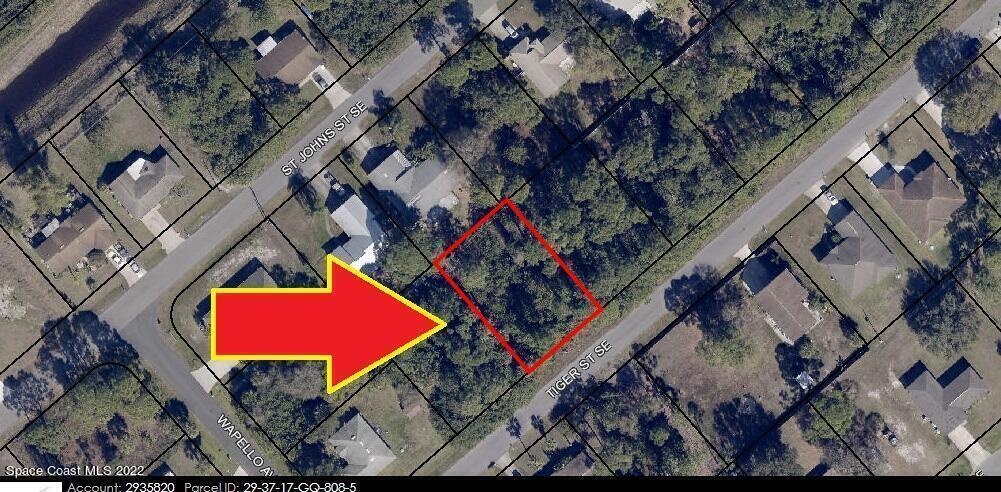 0.24 acre residential lot (RS2) available in Port Malabar Unit #17 of Palm Bay. Very nicely located in the SE Section of Palm Bay, this lot is just 1.2 miles -4 minutes- to Publix Shopping, 2.8 miles -6 minutes- to Bayside High and WestSide Elementary Schools, 1.1 miles -3 minutes- to the PGA Majors Golf Course, and just 13.8 miles -30 minutes- to the beaches in Indialantic. From Exit #173 of I-95 go west on Malabar Road SE. Turn left on San Filippo Drive SE and proceed south for 2.9 miles. Turn right on Valerius Street SE, continue on Wabash Road SE, left on Weldon Street SE, right on Tharp Road SE and left on Tiger Street SE. The lot will be on the right hand side of the road.