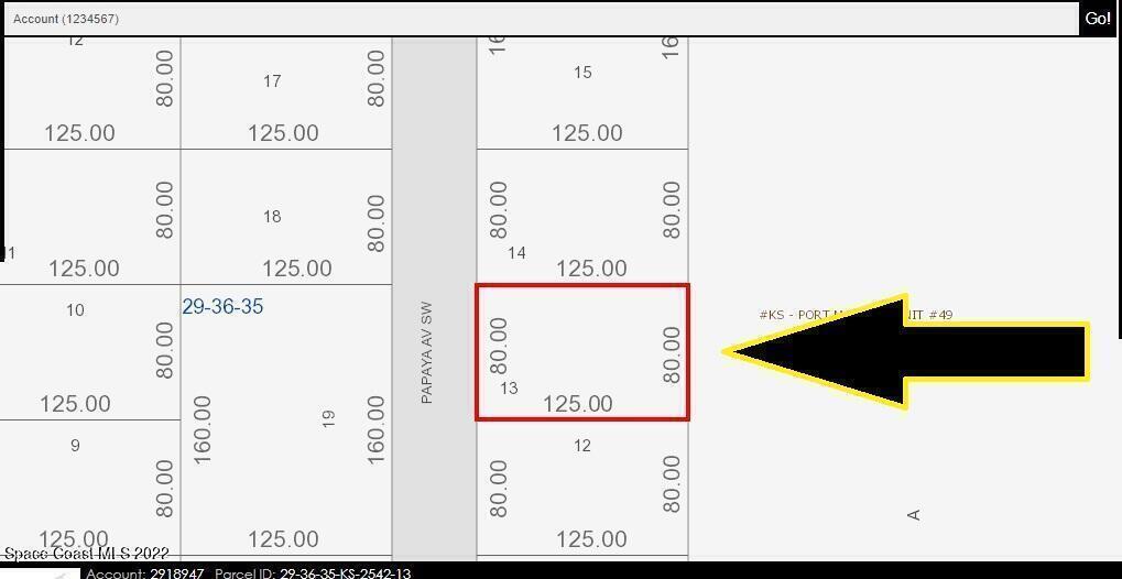 Powerlines at street! Next to an existing home! 0.23 acre buildable single family residential lot [rs2 zoning] available in Port Malabar Unit #49 of Palm Bay. Nicely located in the rural SW section near the famous Compound, this lot is just 5.1 miles -10 minutes- to Publix Shopping, 3.6 miles -7 minutes- to Bayside and Westside Elementary Schools, 13.8 miles -29 minutes- to the Melbourne Square Mall, and just 18.2 miles -38 minutes- to the beaches in Indialantic. From Exit #176 of I-95 go west on Palm Bay Road. Turn left on Minton Road and proceed south for 3.3 miles. turn right on Jupiter Boulevard SW and left on Degroodt Road SW. Proceed south for 4.6 miles and turn right on St. Andre Boulevard. Proceed 1.3 miles and turn left on Papaya Avenue. The lot will be on the left next to house.