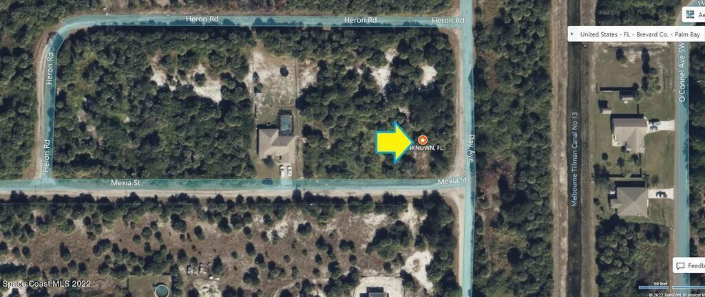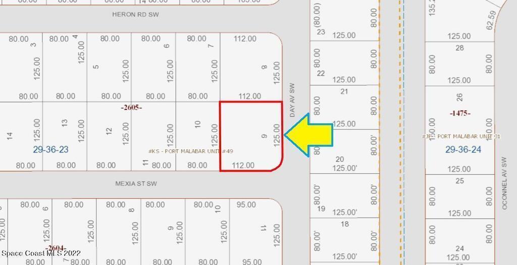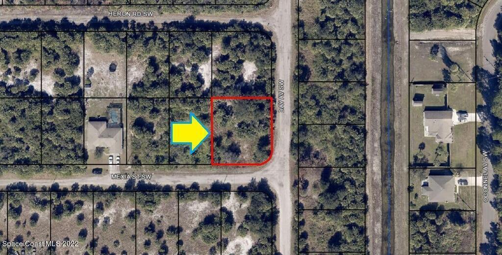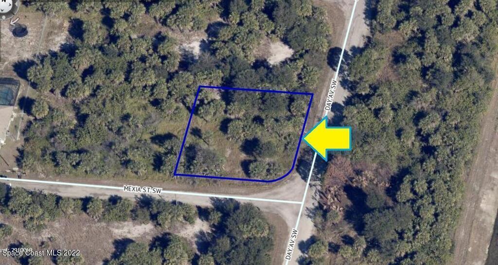 0.32 acre buildable residential corner lot available in Port Malabar Unit 49 of Palm Bay. Located in the southwest section, this lot is just 1.3 miles - 4 minutes to Bayside High School, 2.6 miles - 6 minutes to the Publix Supermarket, 14 miles - 29 minutes to Melbourne Airport, and 17 miles - 36 minutes to the beaches of Indialantic. From exit #176 of I-95 go west on Palm Bay Road for .7 miles, left on Minton Road for 3.3 miles, right on Jupiter Boulevard, left on DeGroodt Road for 2.5 miles, right on JA Bombardier Boulevard for .7 miles, and left on Day Avenue to the corner with Mexia Street. The lot will be on your right on the northwest corner.