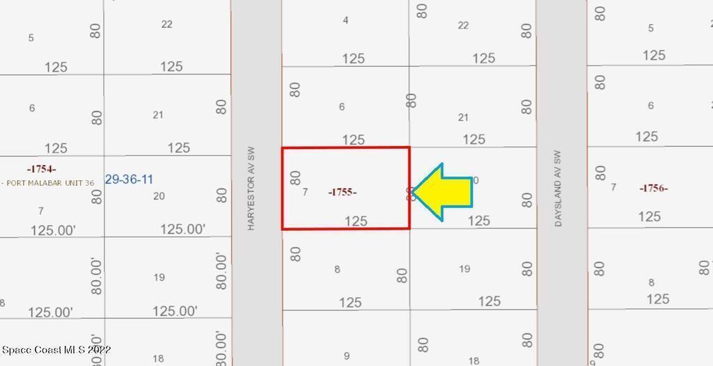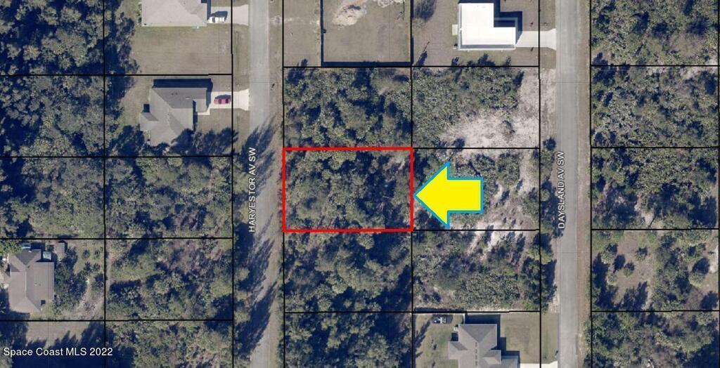 0.23 acre buildable residential lot available in Port Malabar Unit 36 of Palm Bay. Located in the southwest section, this lot is just 1.8 miles - 5 minutes to Jupiter Elementary School, 3.2 miles - 7 minutes to the Winn Dixie Supermarket, 12.8 miles - 28 minutes to Melbourne Airport, and 15.6 miles - 34 minutes to the beaches of Indialantic. From exit #176 of I-95 go west on Palm Bay Road for .7 miles, left on Minton Road for 2.5 miles, right on Malabar Road for 1.0 mile, left on Garvey Road for 1.3 miles, right on Harper Boulevard for .9 miles, and right on Haryestor Avenue. The lot will be on your right.