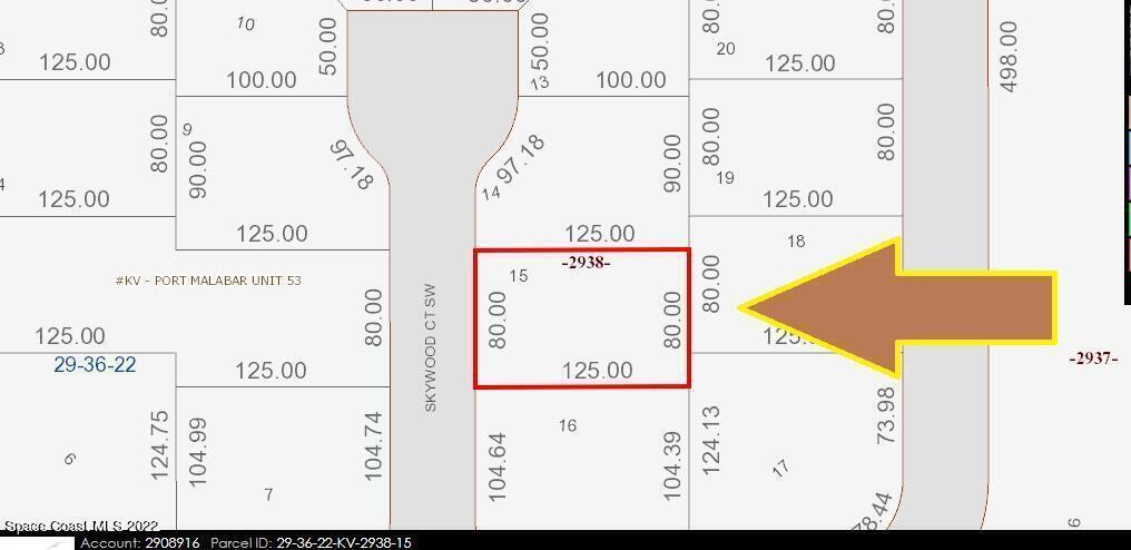 0.23 acre cleared flat-&-level residential lot on a cul-de-sac available in Port Malabar Unit #53 of Palm Bay. Nicely located investment property in the rural SW section near the famous Compound area, this lot will be close to the Palm Bay Parkway once extended and you're just 18 miles to the beaches in Indialantic. The City has not placed utilities in this unit; so the lot and area are not buildable at the present time. From Exit #176 of I-95, go west on Palm Bay Road. Turn left on Minton Road and go south for 3.3 miles, right on Jupiter Boulevard SW, left on DeGroodt Road SW for 2.5 miles, left on J.A. Bombardier Boulevard SW for 2 miles, left on Wingham Drive SW, left on Tafon Circle SW, and left on Skywood Court SW. The lot is on the right side of the cul-de-sac road.