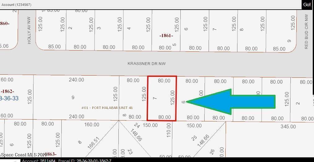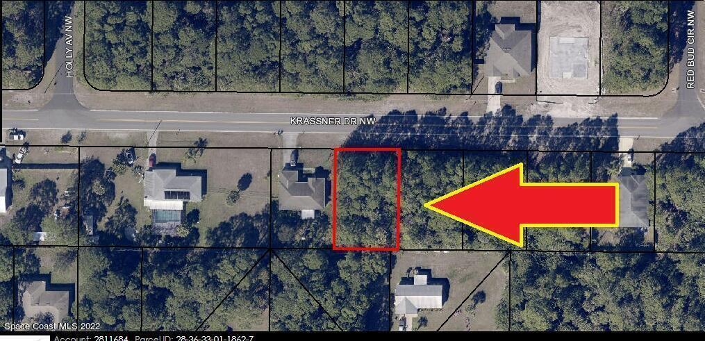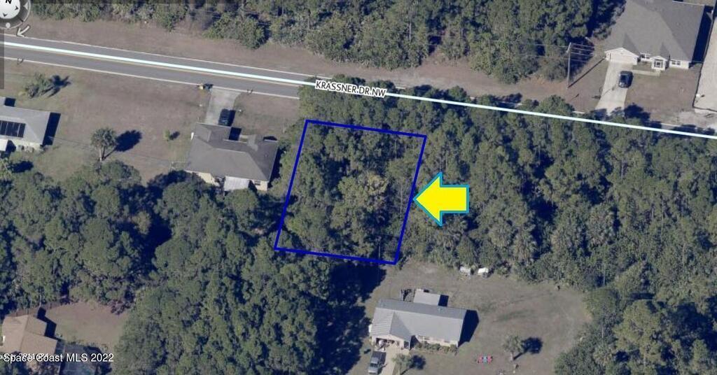 0.23 acre build-able single family residential lot [Rs2 Zoning] available in Port Malabar Unit #41 of Palm Bay. Located in the northwest section, this lot is located close to the St Johns Heritage Parkway, and is just 2.9 miles - 6 minutes to Heritage High School, 3.6 miles -8 minutes to the Winn Dixie Supermarket, 15.5 miles - 27 minutes to Melbourne International Airport, and 17.8 miles - 32 minutes to the beaches of Indialantic. From exit #176 of I-95, go west on Palm Bay Road NE for .7 miles, left on Minton Road for 2.5 miles, right on Malabar Road for 2.7 miles, and left on Krassner Drive. the lot will be on your left.