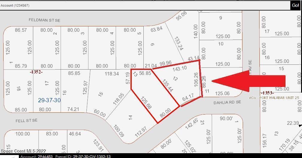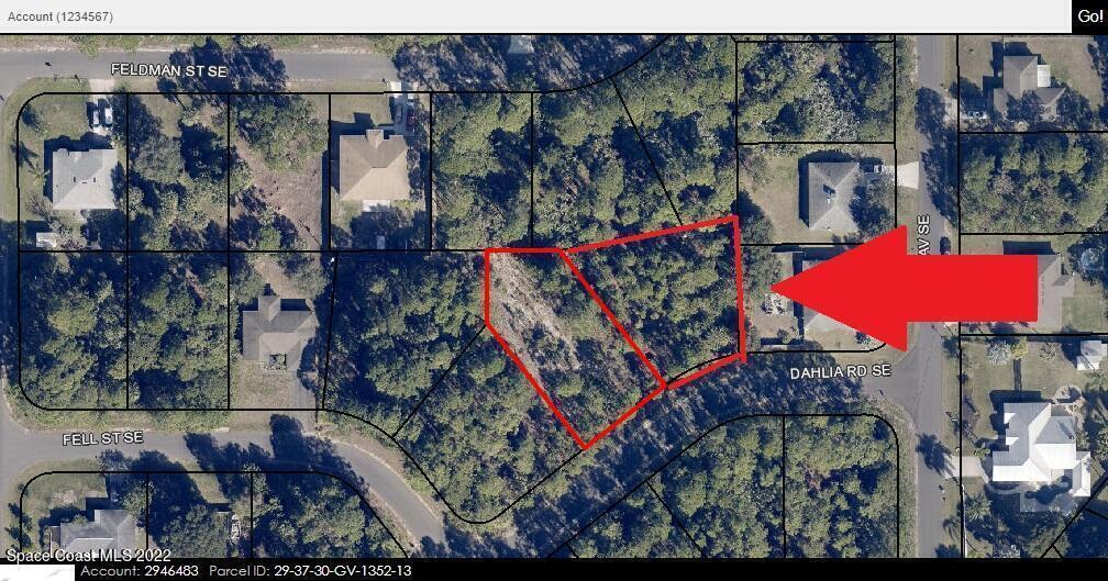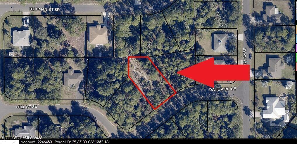 2 of 2 Side-by-Side Adjacent single family residential lots (0.58 acres total) available in Port Malabar Unit #25 of Palm Bay. Beautifully located in the SE Section near Bayside Lakes Subdivision, these lots are just 4.3 miles -10 minute- to Publix Shopping, 3 miles -6 minutes- to Bayside High and Westside Elementary Schools, 7.9 miles -16 minutes- to the Shoppes of Palm Bay, 15.5 miles -36 minutes- to Melbourne International Airport and just 19.9 miles -35 minutes- to the beaches in Indialantic. From Exit #173 of I-95 go west on Malabar Road. Turn left on San Filippo Drive SE and proceed south for 5.7 miles. Turn right on Cogan Drive, Left on Paigo Street SE, right on Freehold Avenue SE, Left on Latham Street SE, Right on Feldman Street SE, Left on Daisy, and right on Dahlia on right.