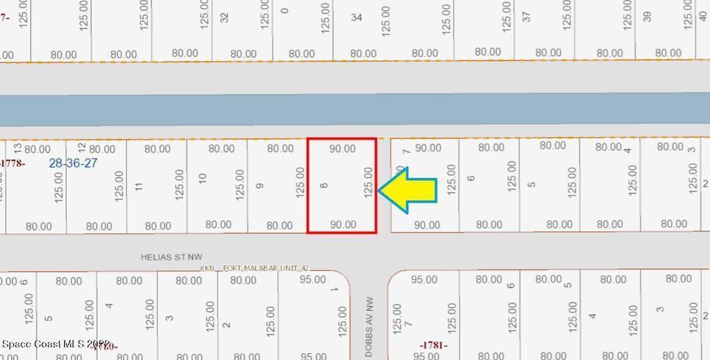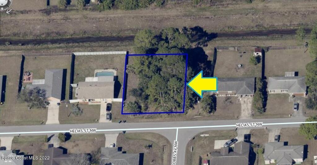 0.26 acre buildable residential lot available in Port Malabar Unit 42 of Palm Bay. Located in the northwest section, this lot has city water available, and a drainage canal in the rear and side allowing more privacy, and is just 3.7 miles - 9 minutes to the Publix Supermarket, 3.8 miles - 9 minutes to McAuliffe Elementary School, 10.4 miles - 24 minutes to Melbourne Airport, and 13.2 miles - 29 minutes to the beaches of Indialantic. From exit #180 of I-95 go west on US-192 W for .5 miles, left on St Johns Heritage Parkway for 4.8 miles, left on Pace Drive for 1.5 miles, left on Gillen Avenue for .2 miles, road turns right and becomes Helias Street. The lot will be on your left.