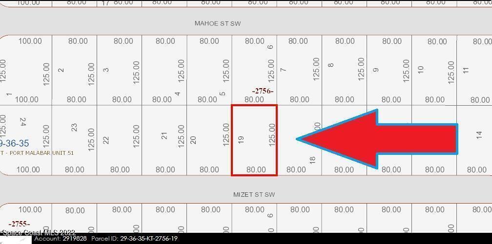 0.23 acre residential lot for investment available in Port Malabar Unit #51 of Palm Bay. Nicely located investment property in the rural SW section near the famous Compound area, this lot will be close to the Palm Bay Parkway once extended and you're just 18 miles to the beaches in Indialantic. The City has not placed utilities in this unit; so the lot and area are not buildable at the present time. From Exit #176 of I-95, go west on Palm Bay Road. Turn left on Minton Road and go south for 3.3 miles, right on Jupiter Boulevard SW, left on DeGroodt Road SW for 4.6 miles. Turn right on St. Andre Boulevard and proceed south for 1.6 miles. Turn left on Drude Park Avenue SW and left on Mizet Street SW, The lot will be on the left side of the road.