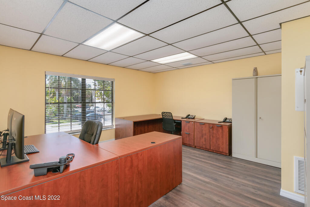 Rarely available commercial condo unit in the Columbia complex directly on A1A in Cape Canaveral. The 884 ft. unit comes with three nice size offices, a lobby and one full bathroom. There is plenty of parking and easily visible signage. The space is completely move-in ready, with full office furnishings, brand new ductwork and a UV light in the HVAC system. Second floor corner unit.