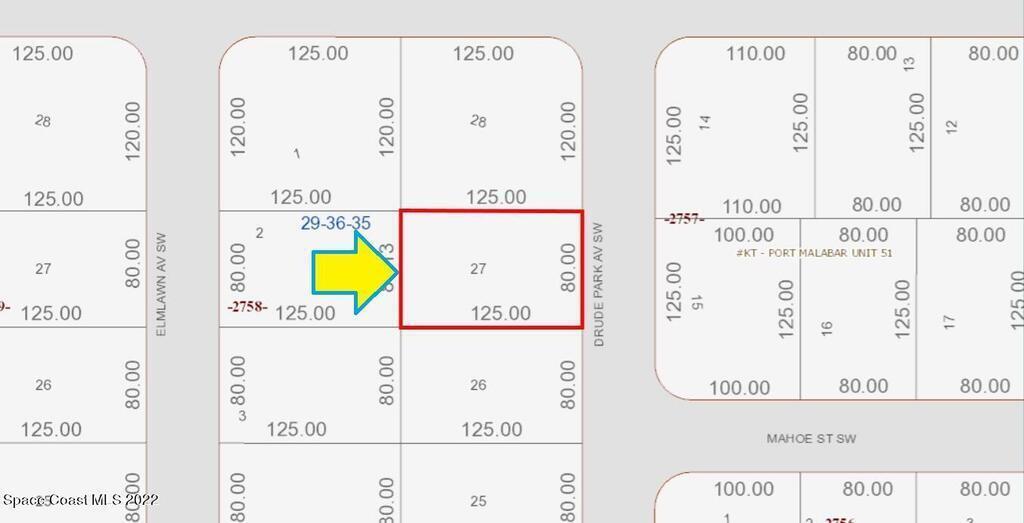 0.23 acre residential lot for investment available in Port Malabar Unit #51 of Palm Bay. Nicely located investment property in the rural SW section near the famous Compound area, this lot will be close to the Palm Bay Parkway once extended and you're just 19 miles to the beaches in Indialantic. The City has not placed utilities in this unit; so the lot and area are not buildable at the present time. From Exit #176 of I-95, go west on Palm Bay Road for .7 miles, left on Minton Road for 3.3 miles, right on Jupiter, Left on DeGroodt Road for 4.6 miles, right on St Andre Boulevard for 1.6 miles, and left on Drude Park Avenue. The lot will be on your right.