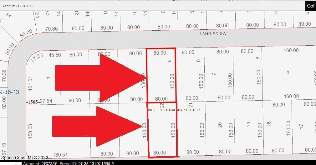 Two oversized Back-to-Back adjacent buildable single family residential lots available in Port Malabar Unit #32 of Palm Bay. Nicely located in the SW Section near the famous Compound area, these lots are just 2.5 miles -6 minutes- to Publix Shopping, 1.2 miles -4 minutes to Bayside High and Westside Elementary Schools, 13.1 miles -31 minutes to the Melbourne Int'l Airport, and just 16.7 miles -35 minutes- to the beaches in Indialantic. From Exit #176 of I-95 go west on Palm Bay Road. Turn left on Minton Road and proceed south for 3.3 miles. Turn right on Jupiter Boulevard SW and left on Degroodt Road SW. Proceed south for 1.9 miles and turn right on Falls Church Street SW, Left on Gaynor Drive SW and right on either Lang Road or Fallmouth Road for either lot.