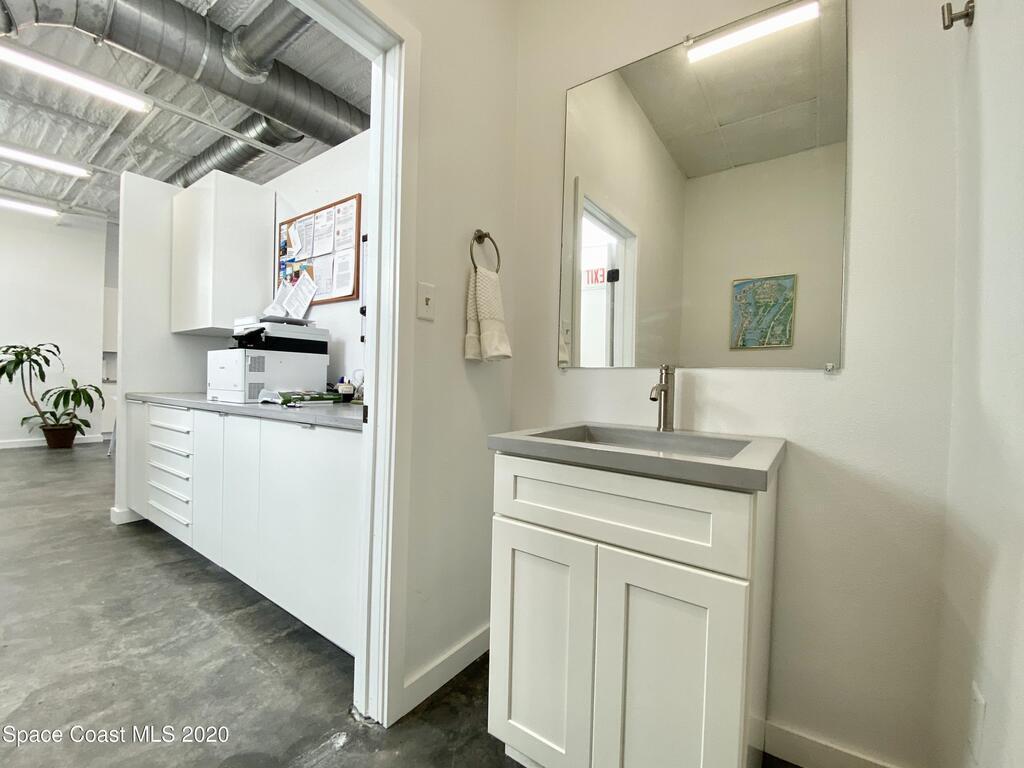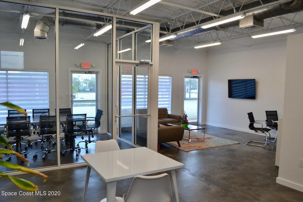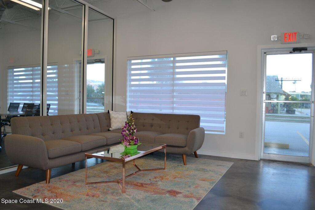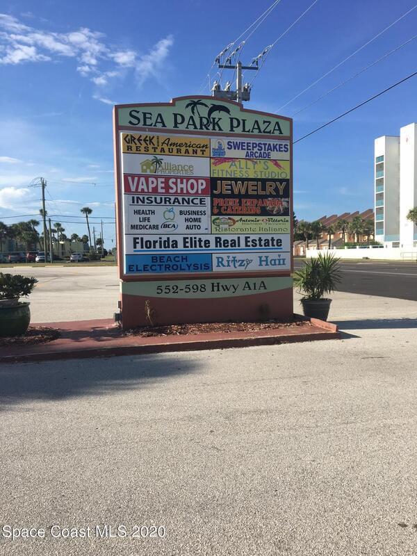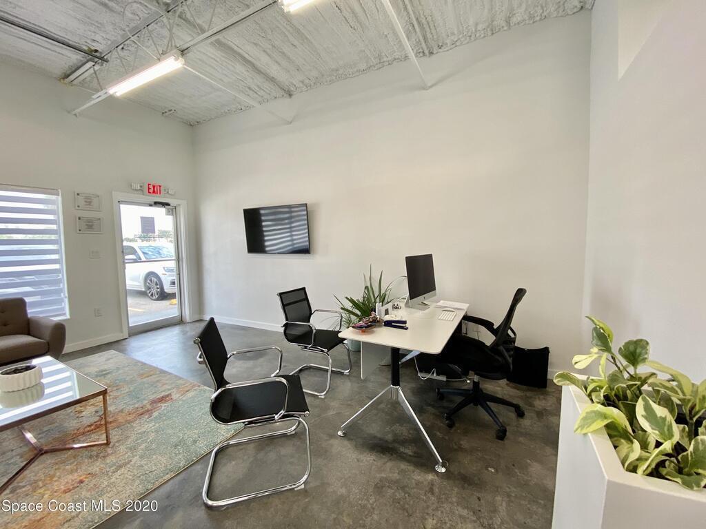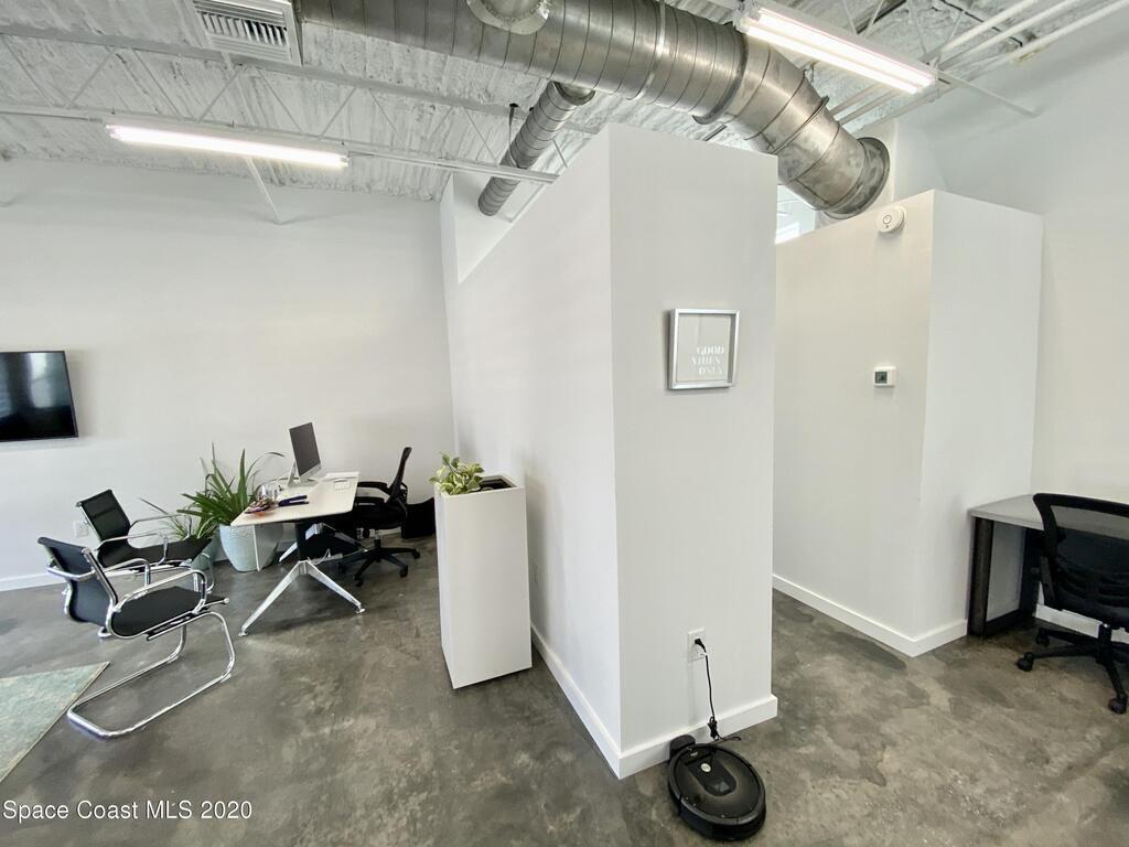 Don't miss this modern & completely updated Office/Retail/Restaurant space in North Satellite Beach, Florida. Completely turn-key, directly across the street from the beach and just north of a new residential development. This fully renovated space boasts exposed metal beams, new HVAC system with metal spiral ductwork, closed-cell insulated 12 ft ceilings, newly insulated walls, glass conference room, kitchenette, reception area, 3 open work stations, copy room, storage area and a private bathroom. Polished & stained concrete flooring throughout is low maintenance and compliments the concrete countertops & tables. All furniture is optional. Located in the well-established Sea Park Plaza approximately 1 mile south of the Pineda Causeway in Satellite Beach, FL.