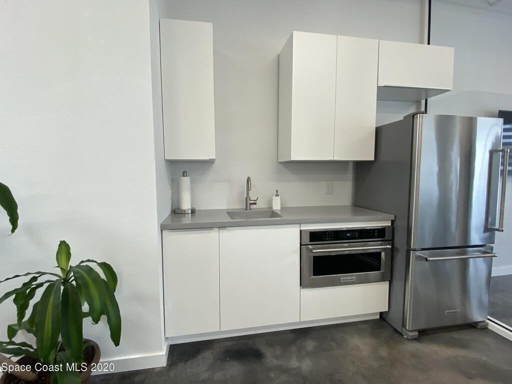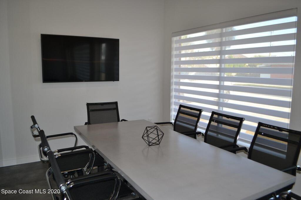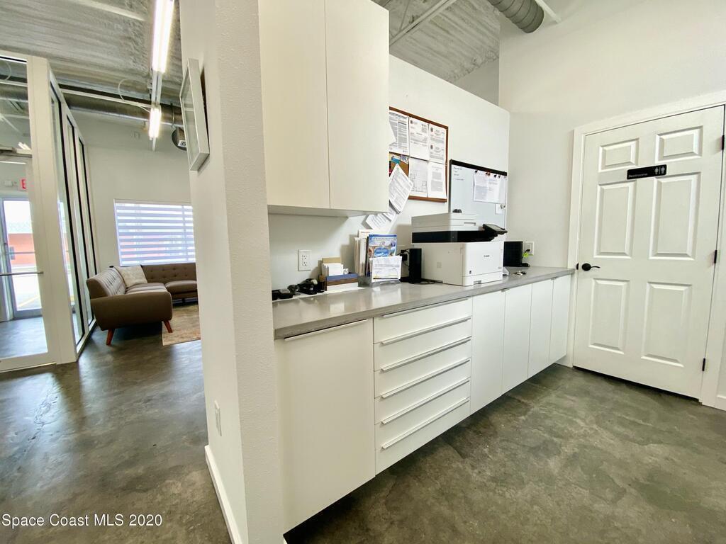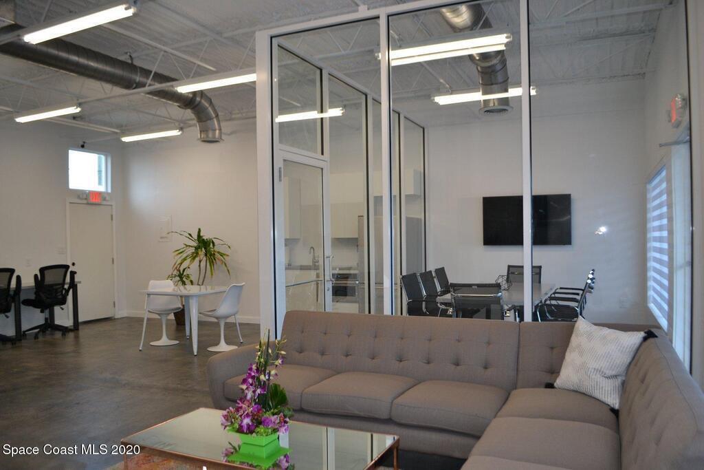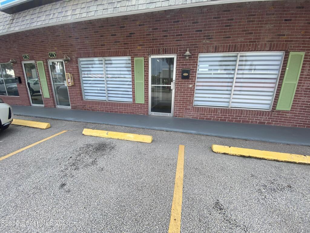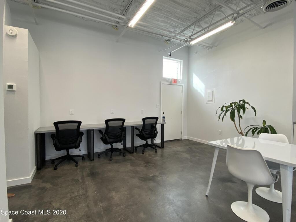 Don't miss this modern & completely updated Office/Retail/Restaurant space in North Satellite Beach, Florida. Completely turn-key, directly across the street from the beach and just north of a new residential development. This fully renovated space boasts exposed metal beams, new HVAC system with metal spiral ductwork, closed-cell insulated 12 ft ceilings, newly insulated walls, glass conference room, kitchenette, reception area, 3 open work stations, copy room, storage area and a private bathroom. Polished & stained concrete flooring throughout is low maintenance and compliments the concrete countertops & tables. All furniture is optional. Located in the well-established Sea Park Plaza approximately 1 mile south of the Pineda Causeway in Satellite Beach, FL.