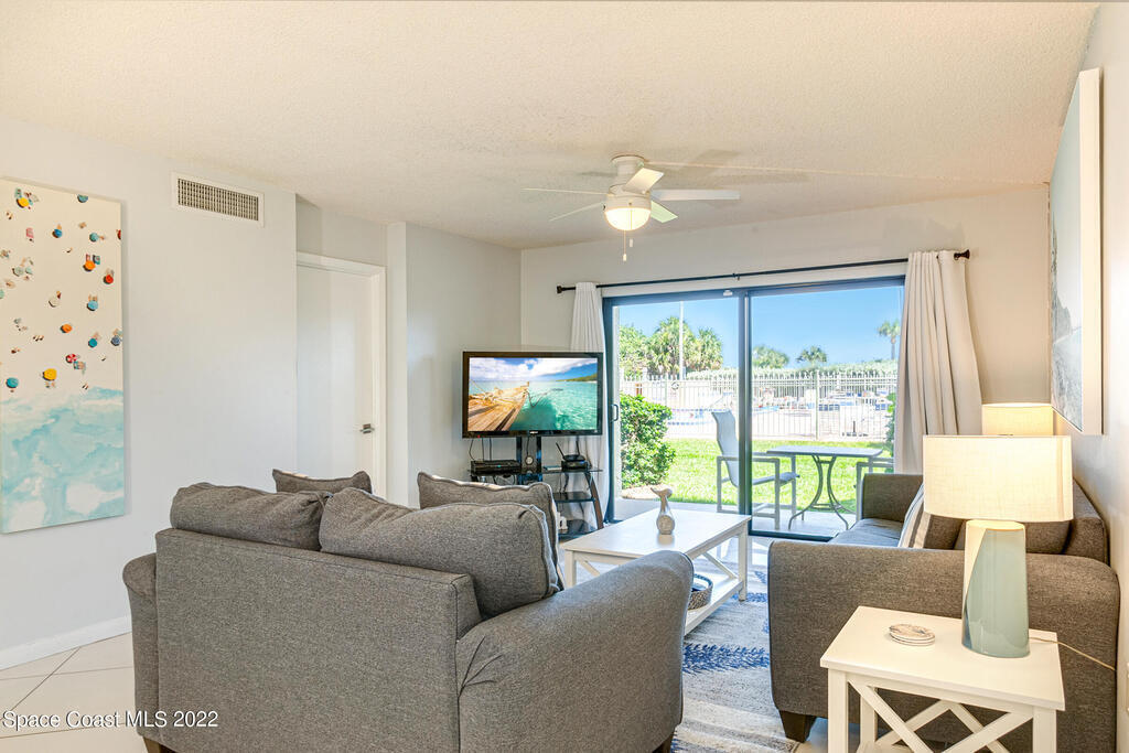 Tropical Investment Gem: Fully-furnished WEEKLY rental in one of the Space Coast's top-rated bnb hotspots! This 2-bed, 2-bath coastal retreat features stylish tile floors, beautifully updated bathrooms, and the convenience of an in-unit washer & dryer plus a premium assigned parking spot. Located on the easily accessible ground floor, step right out your door to the heated oceanfront pool or stroll to the private beach access for sunrise walks. Canaveral Towers offers on-site management and a dedicated rental office to make ownership seemingly effortless. Enjoy resort-style amenities including a sparkling pool, putting green, shuffleboard, and direct beachfront views. Guests will love the unbeatable location near Port Canaveral's cruise terminals, world-class dining, local attractions, shopping, and just an hour to Disney. Whether you're relaxing in paradise or collecting income, this turnkey coastal escape delivers on every level!