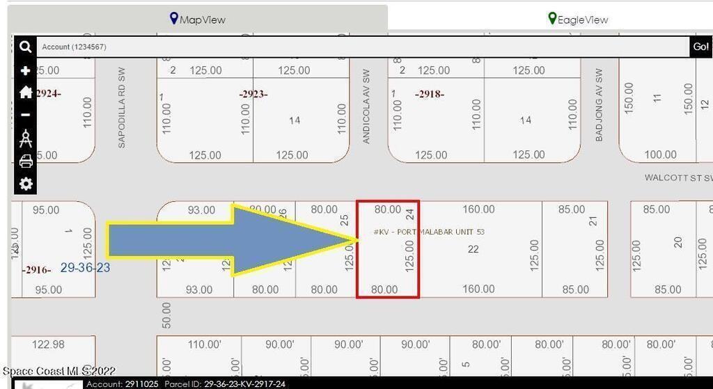 0.23 acre residential investment property available in Port Malabar Unit #53 of Palm Bay, Brevard County. This property, which is near the famous Compound area and the Palm Bay Parkway Extension, has road access but does not have any utilities at the present time; so the lot and the area are not buildable right now. Directions are as follows - From Exit #176 of I-95 go west on Palm Bay Road NE. Turn left on Minton Road and proceed south for 3.3 miles. turn right on Jupiter Boulevard SW and left on Degroodt Road SW. Proceed south for 2.5 miles and turn right on J.A. Bombardier Boulevard. Proceed west for for 1.4 miles and turn left on Sapodilla Road SW. Turn right on Walcot Street SW and the lot will be on the right.