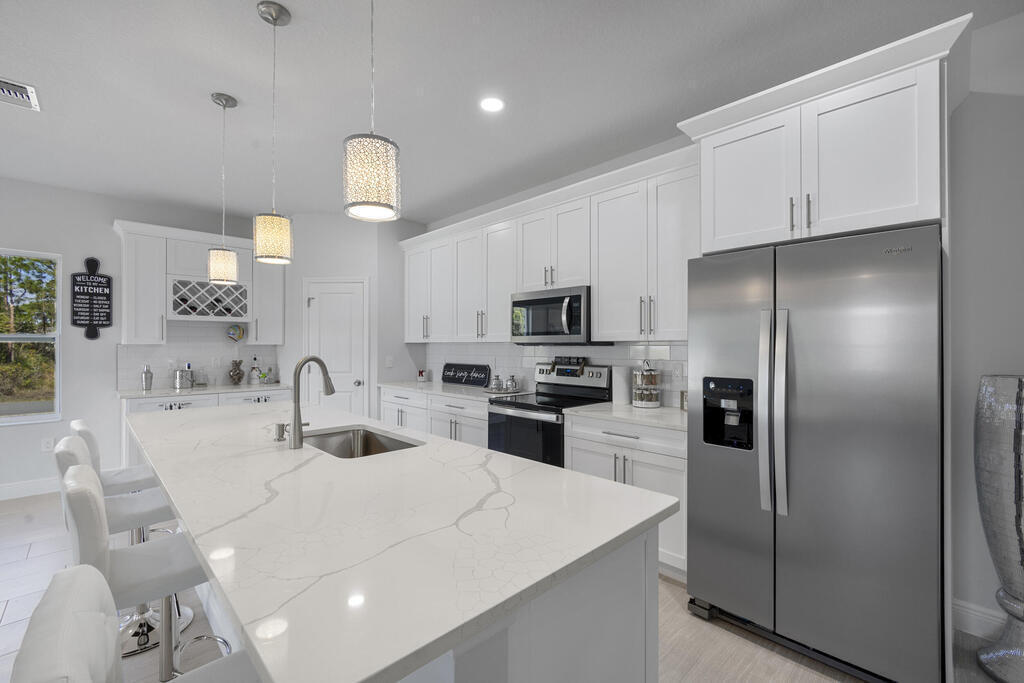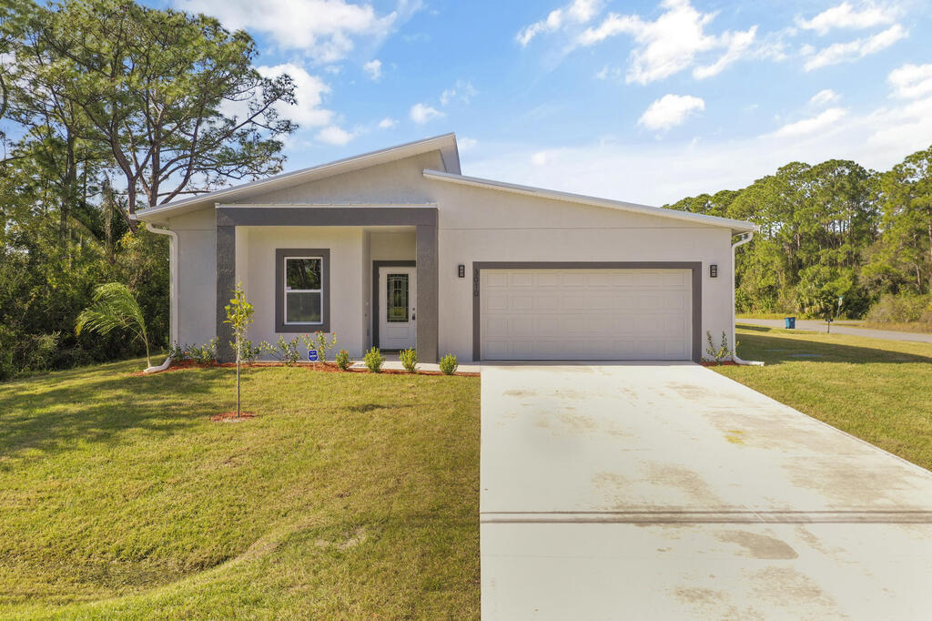 Antonella Model! New Construction offering a modern contemporary design with high end finishes. Entering the home you are graced with 10' ceilings and an open floorplan offering wood plank tile throughout. The bright open kitchen is designed with white cabinetry to include a wine rack, designer marble quartz countertops and stainless steel appliances. Light and bright is an understatement as the windows, pendant and can lighting brighten the home up. Large bathroom with a walk in shower to include glass doors and double shower heads, double sinks with more then enough counter space. Bathrooms are elegantly tiled with custom vanities and quartz counters to compliment the kitchen. Large Walk in closet with double entries from the bedroom and bathroom. Hurricane Impact windows and doors. Other floor plans and lots available.