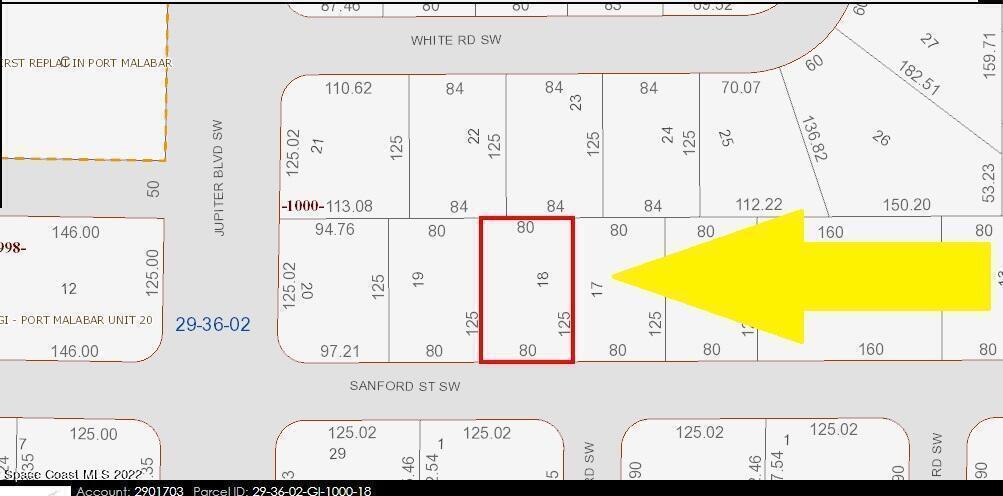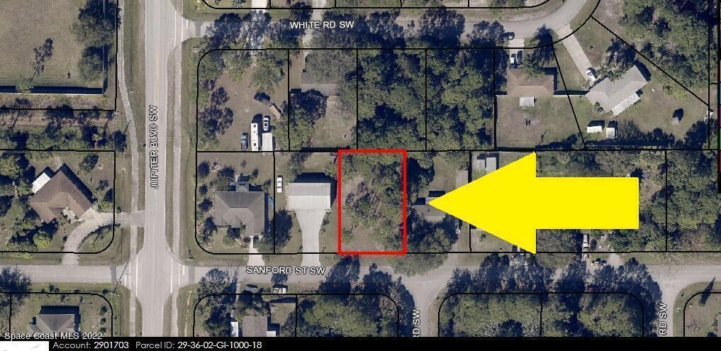 0.23 acre build-able and cleared single family residential lot [Rs2 Zoning] available in Port Malabar Unit #20 of Palm Bay. Nicely located in the Southwest section, this lot is just 0.9 miles - 3 minutes to Jupiter Elementary School, 1.7 miles - 4 minutes to the Winn-Dixie Supermarket, 9.5 miles - 18 minutes to Melbourne International Airport, and 14.0 miles - 27 minutes to the beaches of Indialantic. From exit #176 of I-95 go west on Palm Bay Road for .7 miles, left on Minton Road for 2.5 miles, right on Malabar Road for 1..5 miles, left on Jupiter Boulevard SW, and left on Sanford Street SW. The lot will be on your left.