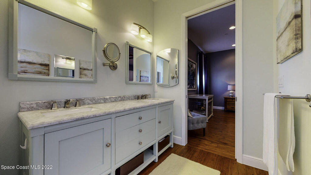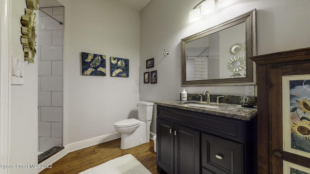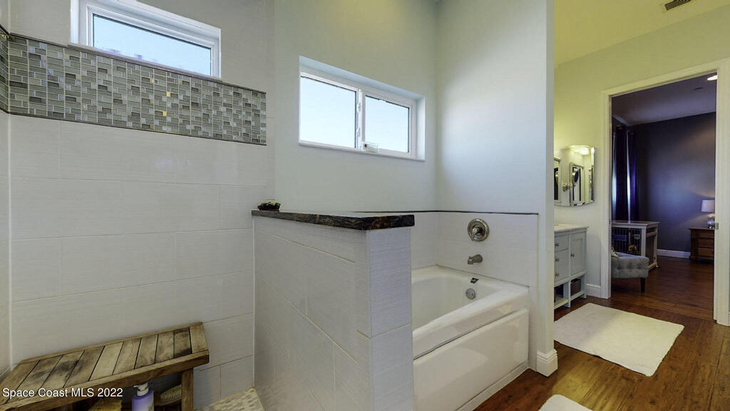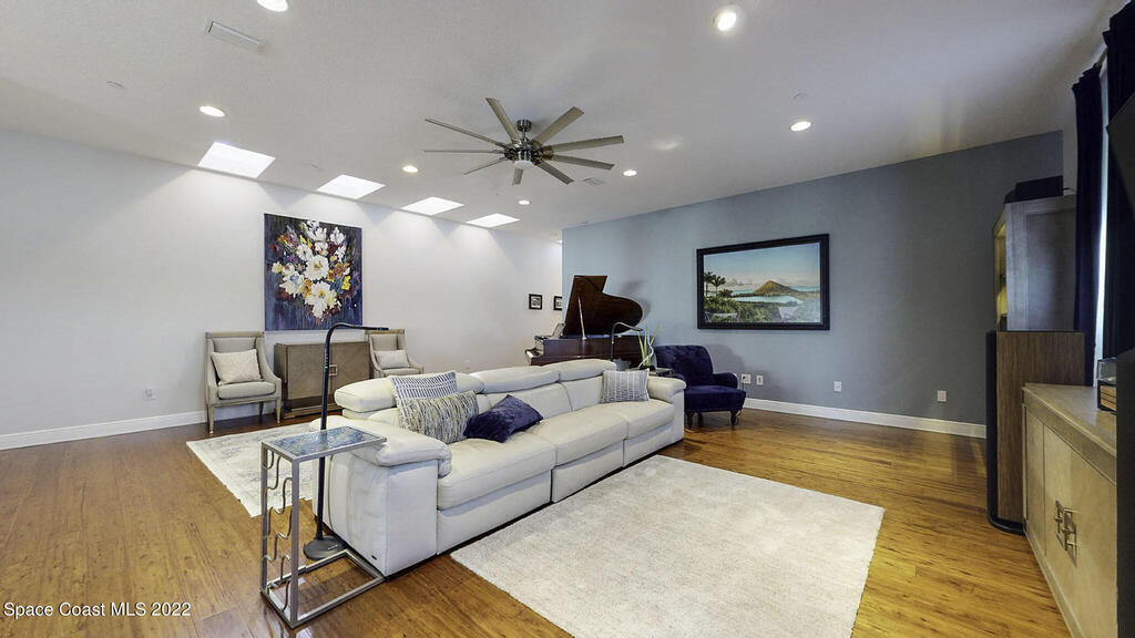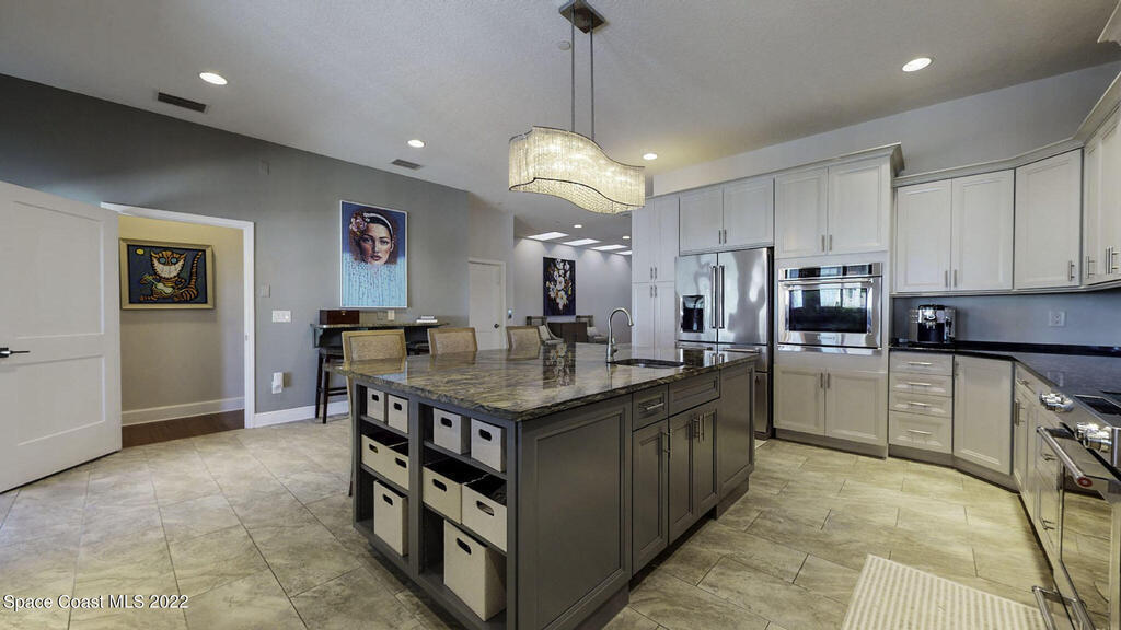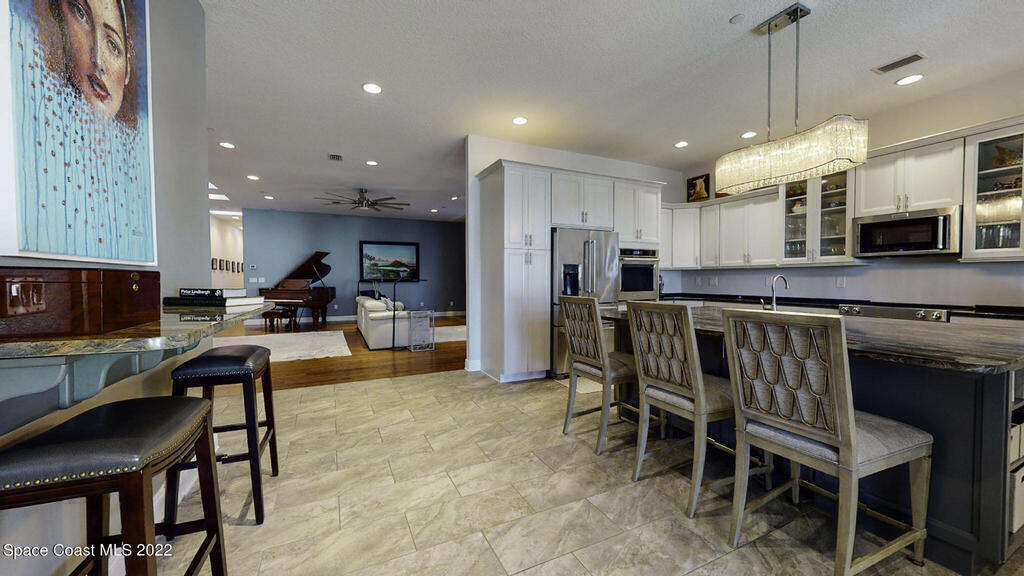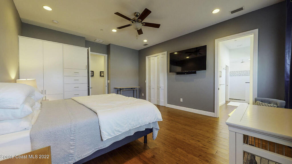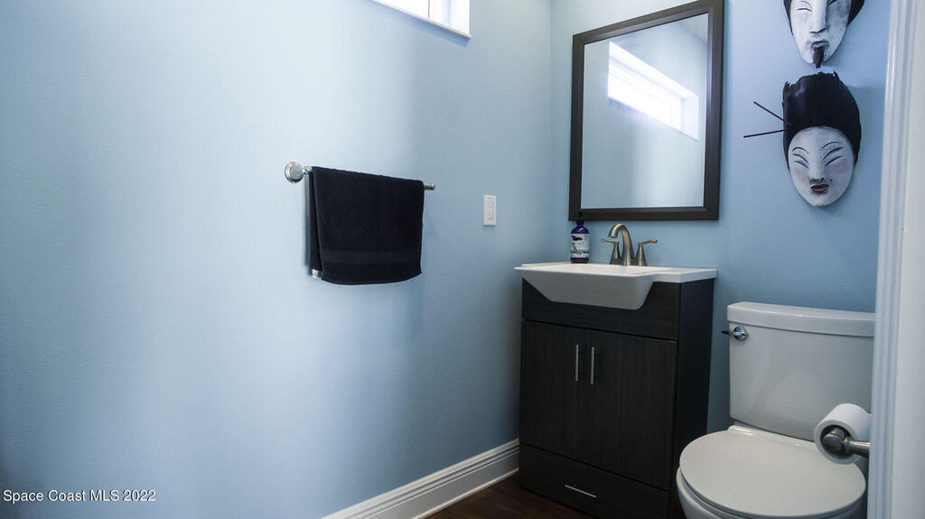 Opportunity to own a luxurious, modern home in the heart of downtown Cocoa Beach! Built in 2017 w/state-of-the-art hurricane resistant windows, this home offers perfect blend of style & functionality. The ground floor has full offices w/half bath, providing the perfect space for those who work from home or need a separate office space. Take the elevator to the main living area & be greeted by spacious open floor plan, complete w/3 bedrooms & 2 bathrooms. The third floor offers a bonus/game room w/a half bath, perfect for entertaining guests or unwinding after a long day. The home boasts luxurious finishes, including huge island kitchen w/custom cabinets & spacious open great rm w/transom windows that provide plenty of natural light & accent lighting. Imagine living & working here!