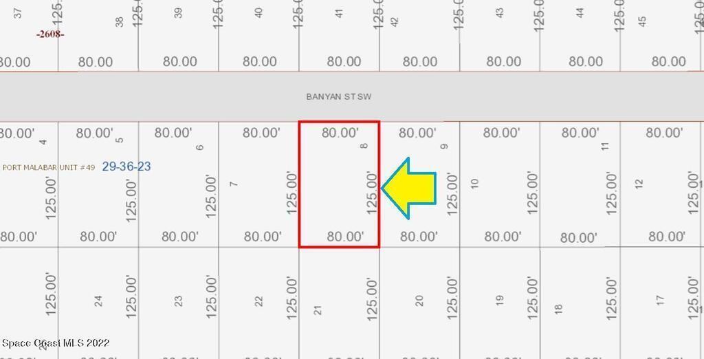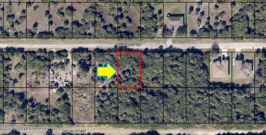 One of 2 side-by-side adjacent lots available in Port Malabar Unit 49 of Palm Bay (the other is 826 Banyan). Located in the southwest section, this buildable residential lot is just 1.3 miles - 4 minutes to Bayside High School, 2.5 miles - 7 minutes to the Publix Supermarket, 14 miles - 32 minutes to Melbourne Airport, and 17 miles - 38 minutes to the beaches of Indialantic. From exit #176 of I-95 go west on Palm Bay Road for .7 miles, left on Minton Road for 3.3 miles, right on Jupiter Boulevard, left on DeGroodt Road for 2.5 miles, right on J.A. Bombardier Boulevard for .9 miles, left on Madden Avenue for.1 mile, and right on Banyan Street. The lot will be on your left.