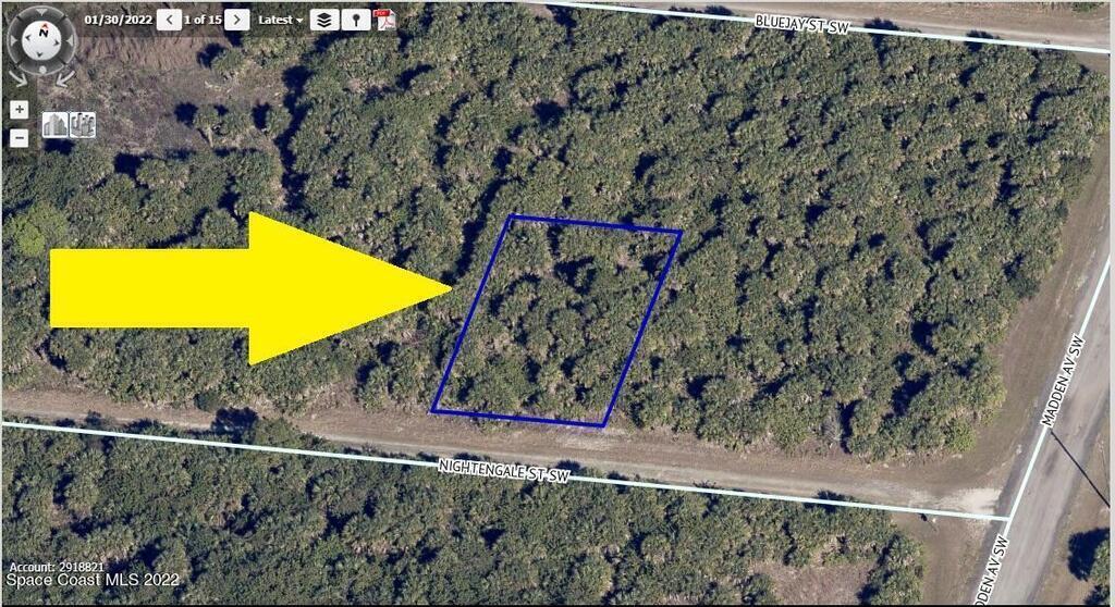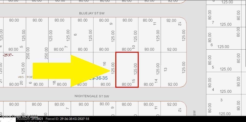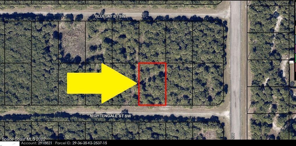 0.23 acre buildable single family residential lot [Rs2 Zoning] available in Port Malabar Unit #49 of Palm Bay. Located in the southwest section, this lot is just 3.4 miles - 7 minutes to Westside Elementary School, 5.3 miles - 11 minutes to the Publix Supermarket, 16.5 miles - 33 minutes to Melbourne Airport, and 21.2 miles - 35 minutes to the beaches of Indialantic. From exit #176 of I-95 go west on Palm Bay Road NE for .7 miles, left on Minton Road for 3.3 miles, right on Jupiter Boulevard for .1 mile, left on DeGroodt Road SW for 4.6 miles, right on St. Andre Boulevard for 1.2 miles, left on Madden Avenue for .4 miles, and right on Nightengale Street. The lot will be on your right.
