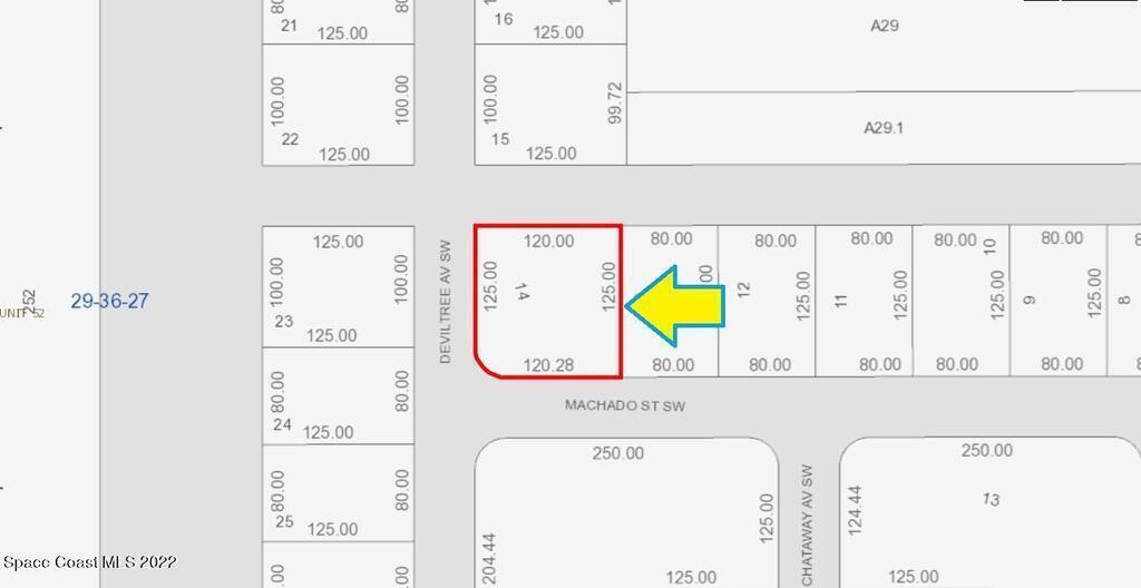 0.34 acre corner vacant lot available in Port Malabar Unit #52 of Palm Bay. There are no utilities present at this lot or in this area; so the lot and the unit are not build-able. The seller has no knowledge of the property and makes no representations except for title. This property is for investment purposes only in the future of Palm Bay. From exit #176 of I-95 go west on Palm Bay Road for .7 miles, left on Minton Road for 3.3 miles, right on Jupiter Boulevard, and quick left on DeGroodt Road for 2.5 miles. Turn right on J.A. Bombardier Boulevard for 2 miles, left on Wingham Dr. for .7 miles, right on Stimmel, left on Utopia, and right on Machado. The lot will be on your right at the corner with Deviltree Avenue.