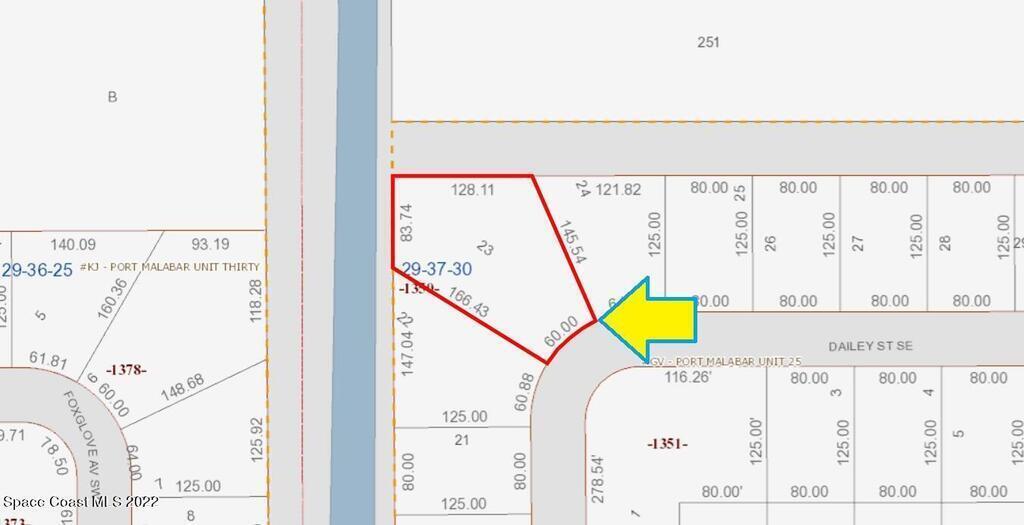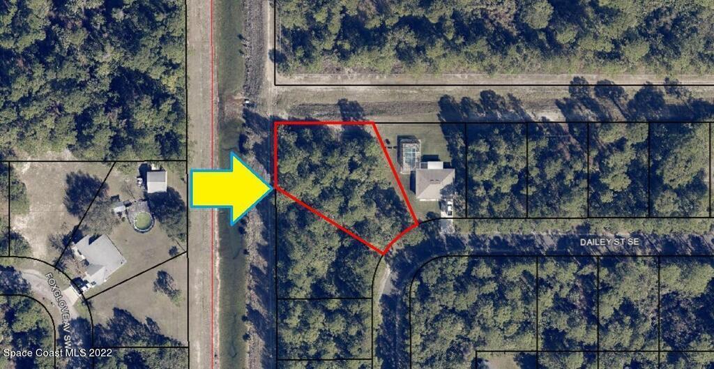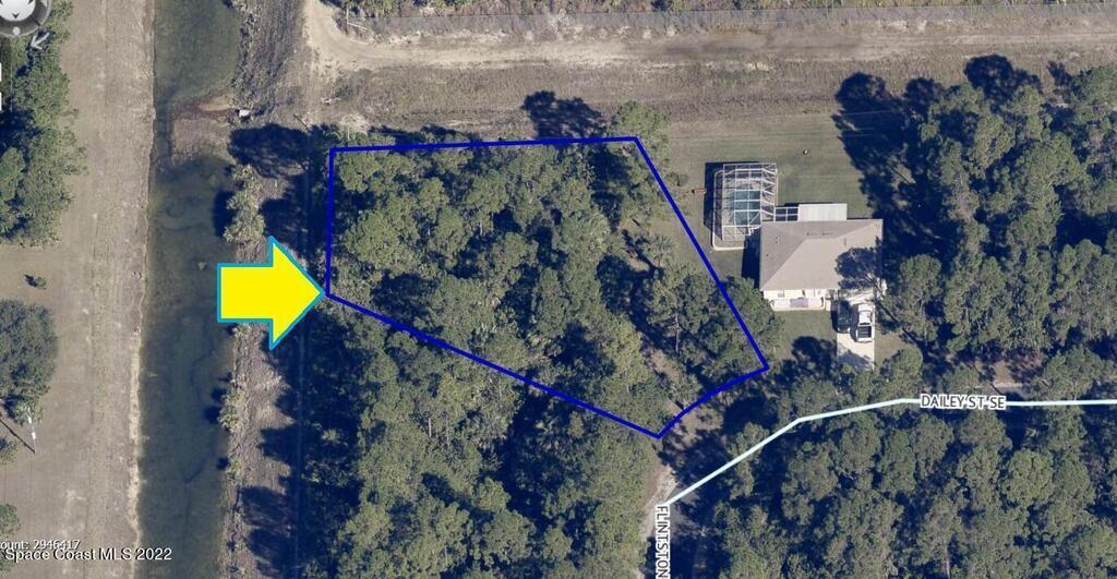 One of 2 side-by-side adjacent lots available in Port Malabar Unit 25 of Palm Bay (the other is 2602 Flintstone Avenue SE). Located in the southeast section, this 0.49 acre buildable residential lot has a drainage canal in the rear allowing more privacy, and is just 2.6 miles - 6 minutes to Westside Elementary School, 3.4 miles - 8 minutes to the Publix Supermarket, 15.2 miles - 34 minutes to Melbourne Airport, and 20 miles - 35 minutes to the beaches of Indialantic. From exit #173 of I-95 go west on Malabar Road for .2 miles, left on San Filippo Drive for 5.7 miles, right on Cogan Drive for .6 miles, left on Paigo Street for .7 miles, right on Freehold Avenue for .1 miles, continue on Dailey Street. The lot will be on your right. *See agent remarks*