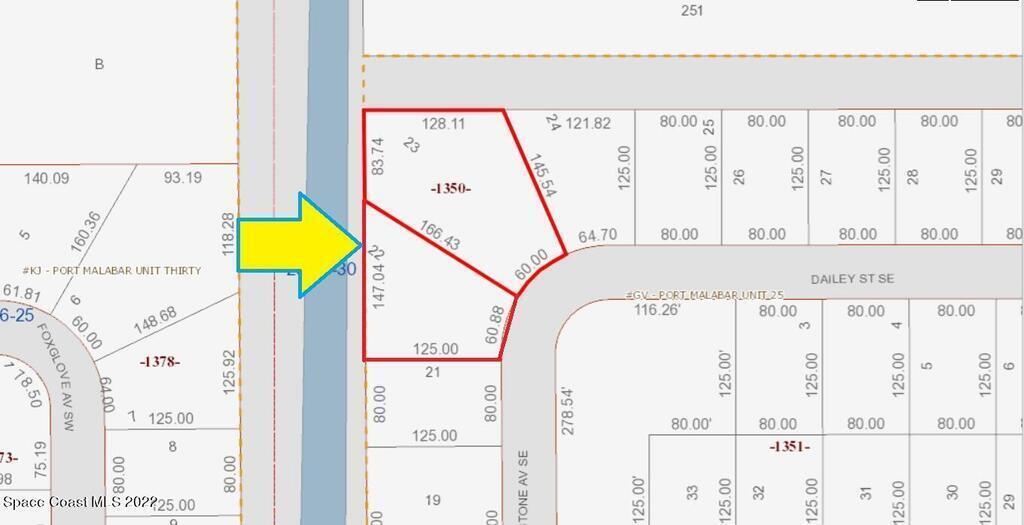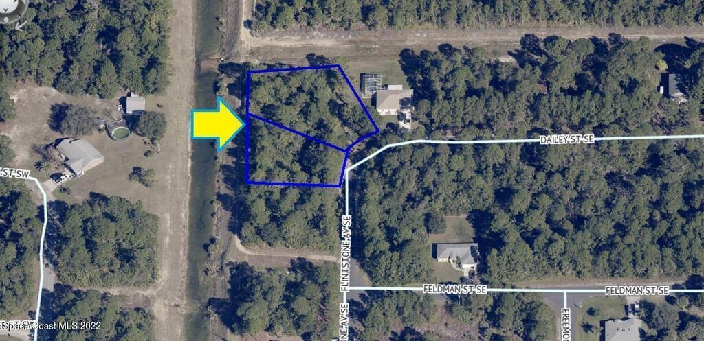 0.84 acre buildable residential lot available in Port Malabar Unit 25 of Palm Bay. Located in the southeast section, this lot has a drainage canal in the rear allowing more privacy, and is just 2.6 miles - 6 minutes to Westside Elementary School, 3.4 miles - 8 minutes to the Publix Supermarket, 15.2 miles - 34 minutes to Melbourne Airport, and 20 miles - 35 minutes to the beaches of Indialantic. From exit #173 of I-95 go west on Malabar Road for .2 miles, left on San Filippo Drive for 5.7 miles, right on Cogan Drive for .6 miles, left on Paigo Street for .7 miles, right on Freehold Avenue for .1 miles, continue on Dailey Street for .4 miles, road turns left and becomes Flintstone. The lot will be on your right. See agent remarks..