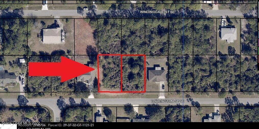 2 side-by-side adjacent buildable single family residential lots [Rs2 Zoning] available in Port Malabar Unit #23 of Palm Bay. Nice located in the southeast section, near the Bayside Lakes Subdivision, this lot is just 4.4 miles -9 minutes- to Westside Elementary and Bayside High Schools, 3.5 miles - 8 minutes to the Publix Supermarket, 14.8 miles - 36 minutes to Melbourne Airport, and 16.3 miles - 38 minutes to the beaches of Indialantic. From exit #166 of I-95 go west on St. Johns Heritage Parkway for 1.7 miles, right on Babcock Street for 1.3 miles, left on Cogan Drive for 1.3 miles, and right on Torrington Street SE. Both 1141 and 1149 Torrington will be on the left side of the road.