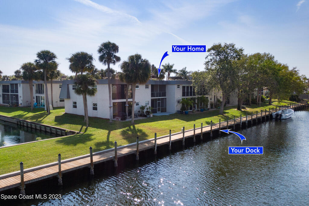 MOTIVATED SELLER! BRING OFFER! NO WEIGHT LIMIT ON PETS. ASSIGNED 30 FOOT WATERFRONT DOCK ON CANAL THAT LEADS TO INTRACOASTAL! KITCHEN AND BATHS ARE ORIGINAL BUT IN GOOD CONDITION, PLEASE LOOK AT PHOTOS. ,TWO STORY TOWNHOME/CONDO, NO ONE IS LIVING ABOVE YOU. . LIGHT & BRIGHT! FIRST FLOOR IS OPEN CONCEPT WITH LIVING, DINING, KITCHEN WITH NEW FRIDGE AND LOTS OF SPACE, HALF BATH, LAUNDRY, AND SCREENED PORCH. UPSTAIRS IS TWO LARGE BEDROOMS EACH WITH A PRIVATE BATH AND BALCONY. COMPLEX HAS POOL, BASKETBALL & TENNIS COURT. LOTS OF STORAGE, UNDER THE STAIRS STORAGE & FOUR WALK IN CLOSETS. ALMOST ALL THE FURNITURE STAYS, INCLUDING TV'S! DUES INCLUDE: INSURANCE, WATER, SEWER, LAWN MAINTENANCE, TRASH, DOCK, POOL,PEST, ROOF & EXTERIOR MAINTENANCE. FULL SIZE WASHER& DRYER& NEWER WATER HEATER