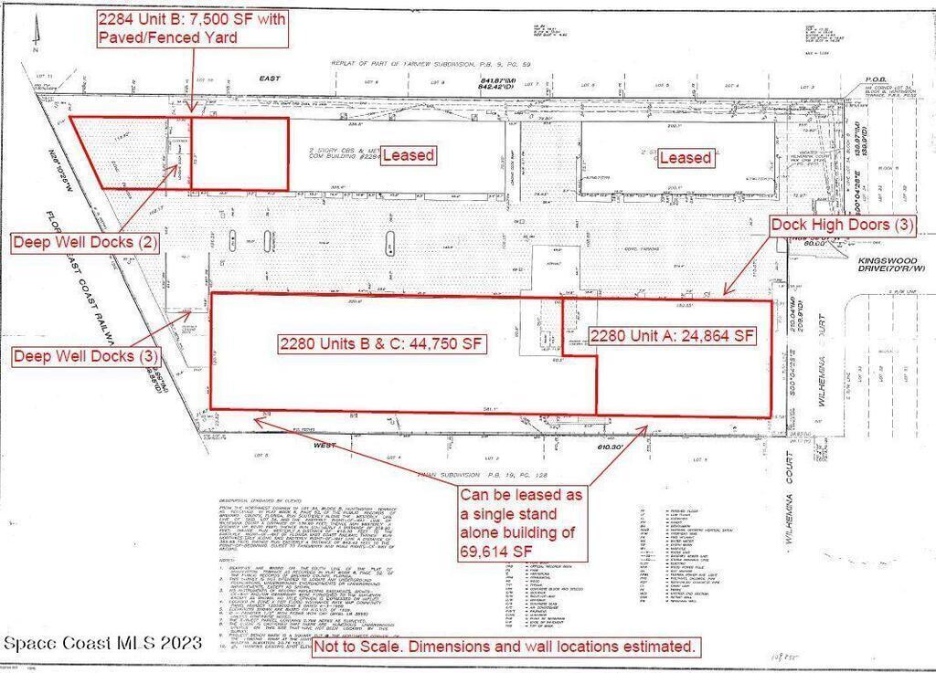 2284 Unit B is estimated 75' x 100' = 7,500 SF Total + BONUS upstairs mezzanine 25' x 100' = 2,500 SF +/-. Interior includes a reception area, 1 private office, printer/copier room and 2 restrooms. Remainder of unit is open warehouse with concrete flooring and estimated 21' clear ceiling height. There is one 10' tall x 8' wide +/- overhead door and one 10' tall x 16' wide +/- overhead door. Unit is 100% HVAC and Fire Sprinklered and has a fenced outdoor storage area. Unit is located just off of US1 approximately halfway between Palm Bay Road and US 192. Surrounding businesses include Raytheon, L3Harris, Leonardo DRS and Northrop Grumman to name a few. The Melbourne International Airport is approximately 5-miles away. Make this the future home for your business today!