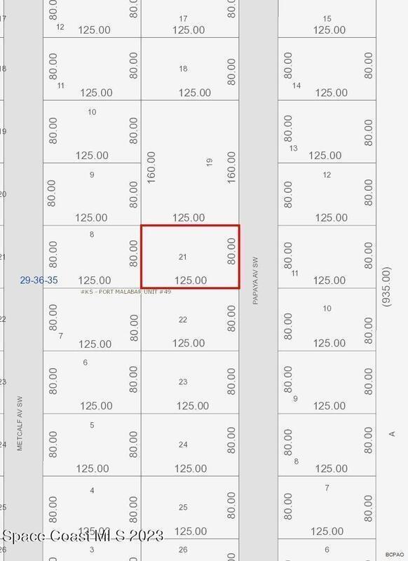 NO HOA! Build your new home on this Palm Bay lot. The city s improving the roads 0.23-acre Port Malabar Unit 49 of Palm Bay. Located in the southwest section, this lot is just 3.5 miles - 8 minutes to Westside Elementary School, 5.4 miles - 11 minutes to the Publix Supermarket, 16.7 miles - 33 minutes to Melbourne Airport, and 18.6 miles - 25 minutes to the beach.